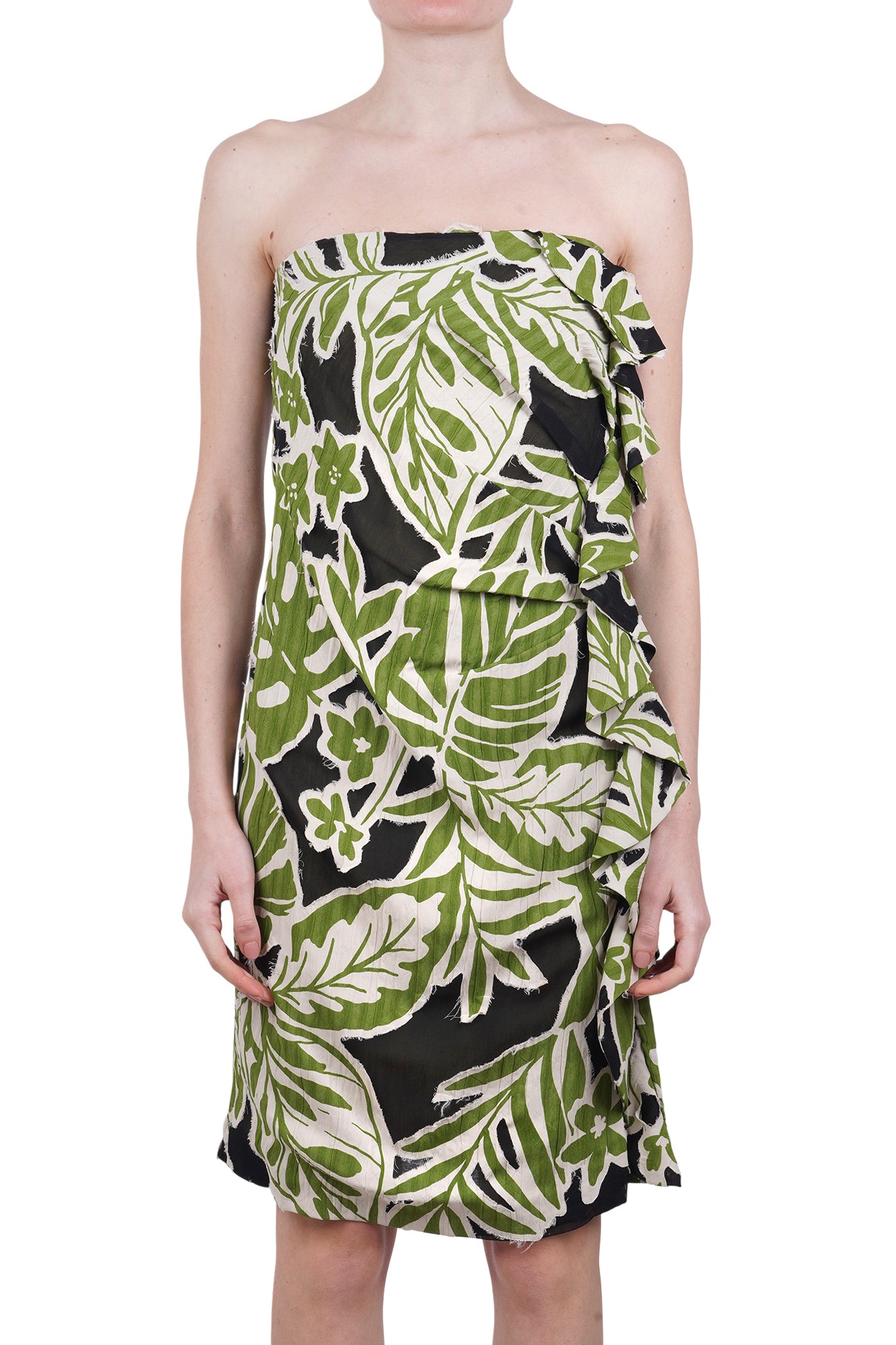 - Stile tropicale: l'abito è caratterizzato da una stampa jungle che aggiunge un tocco esotico al tuo look estivo.