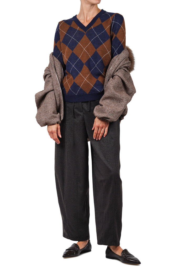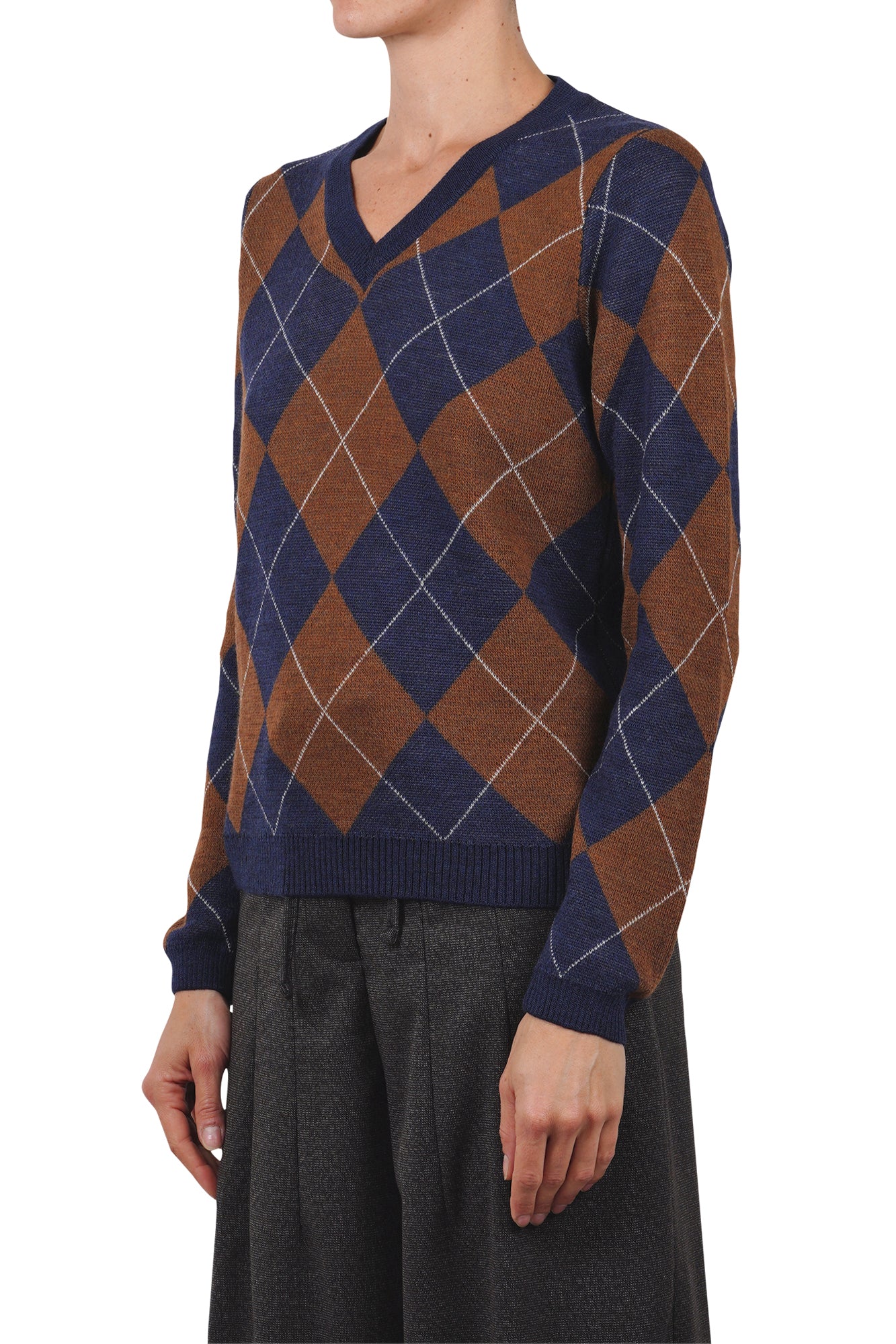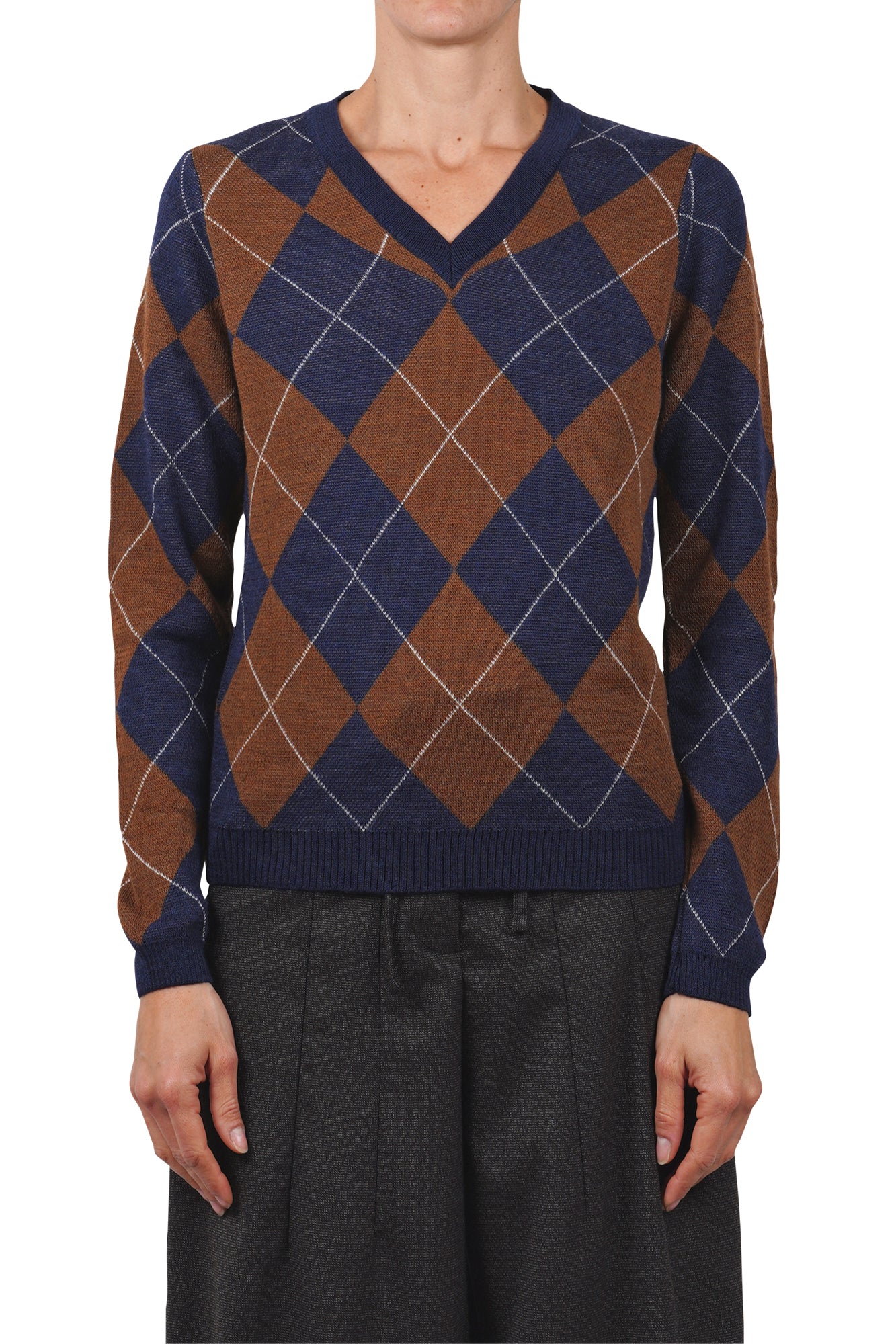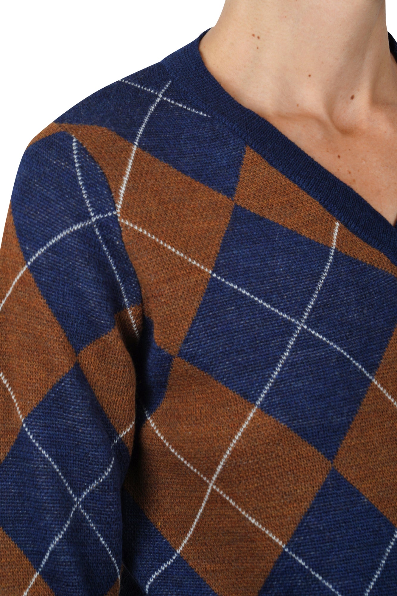 Product code: LF79 MAGLIA MISTO LANA SCOLLO V BLU/CAMMELLO