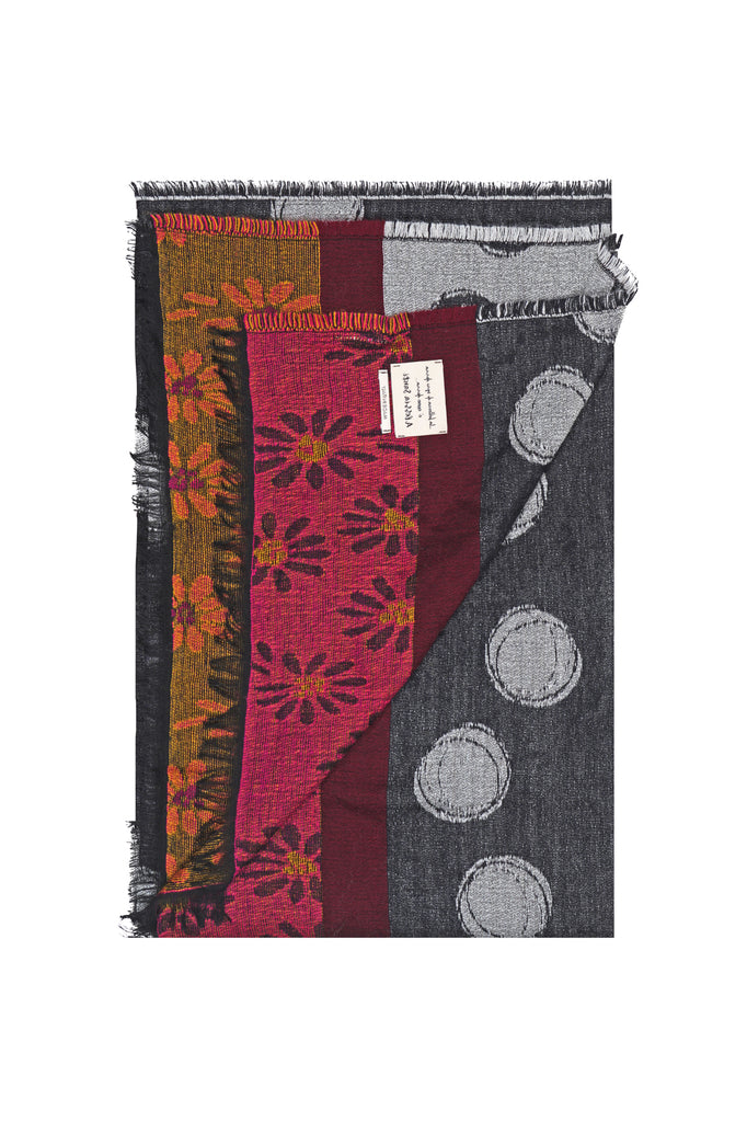 Scarf with circle and floral pattern Pattern Black