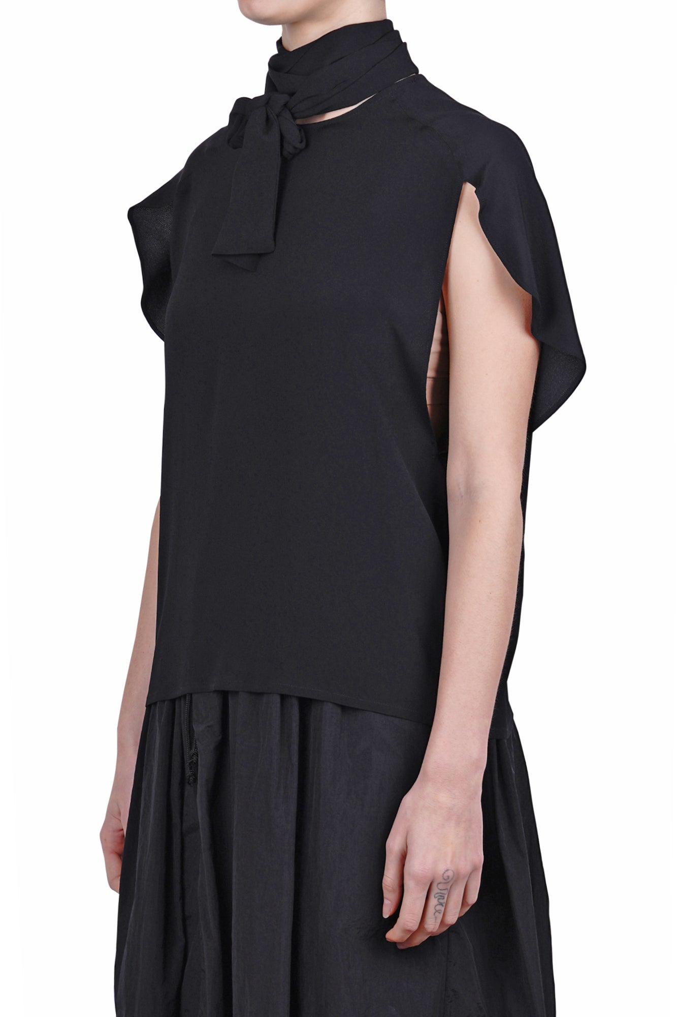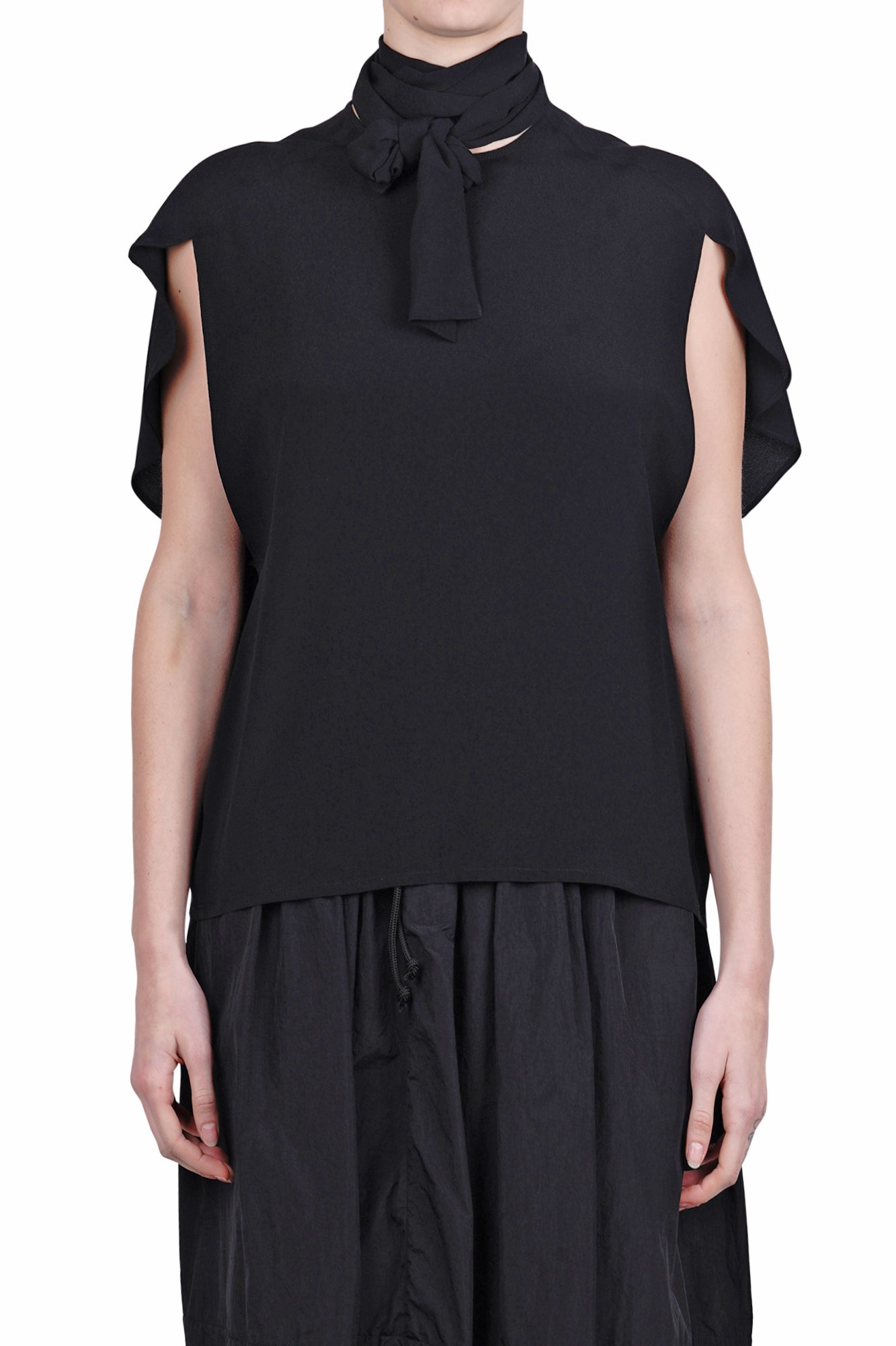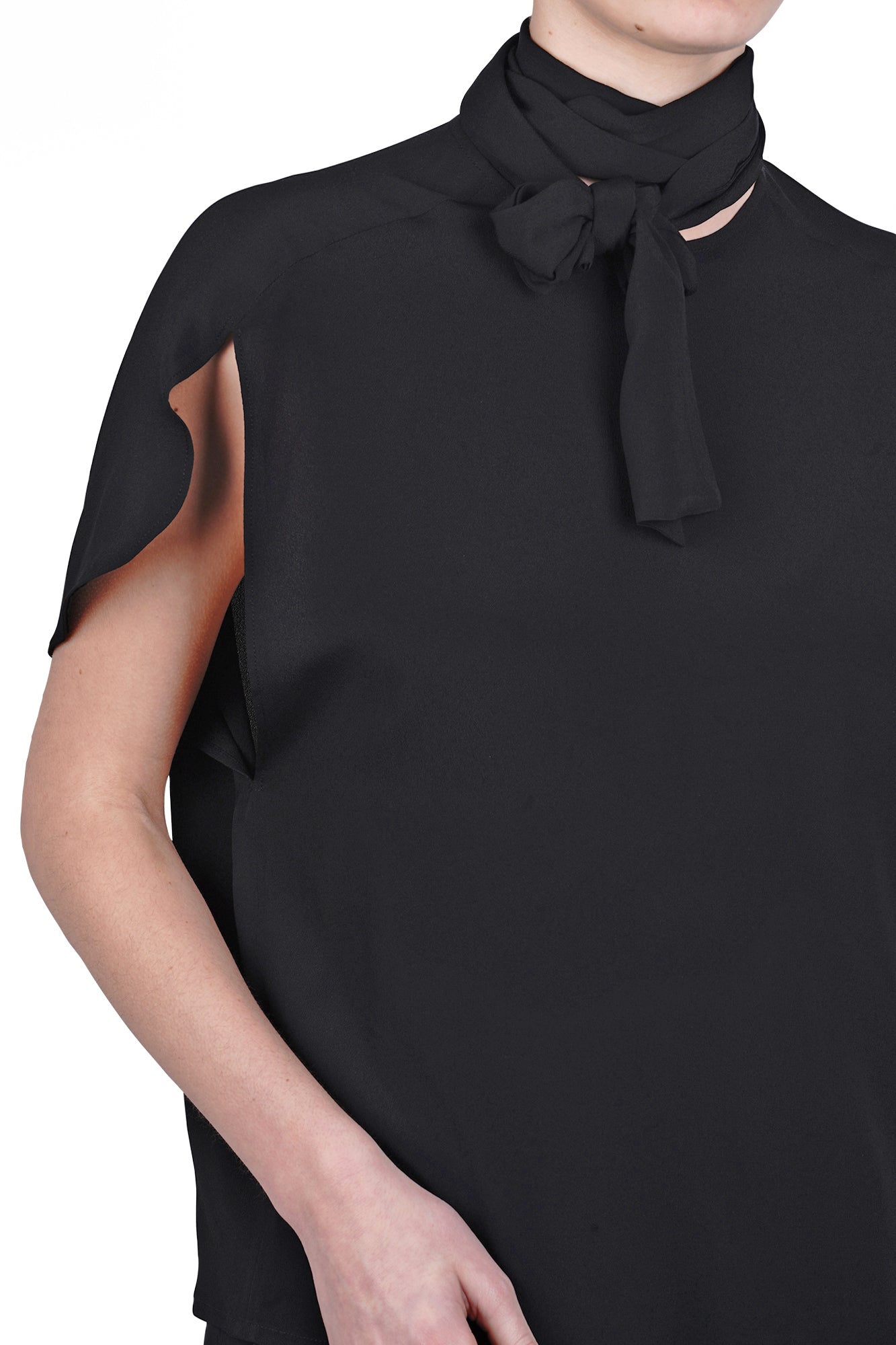 Girocollo con fiocco removibile.