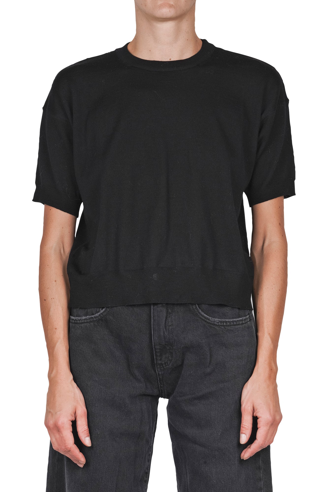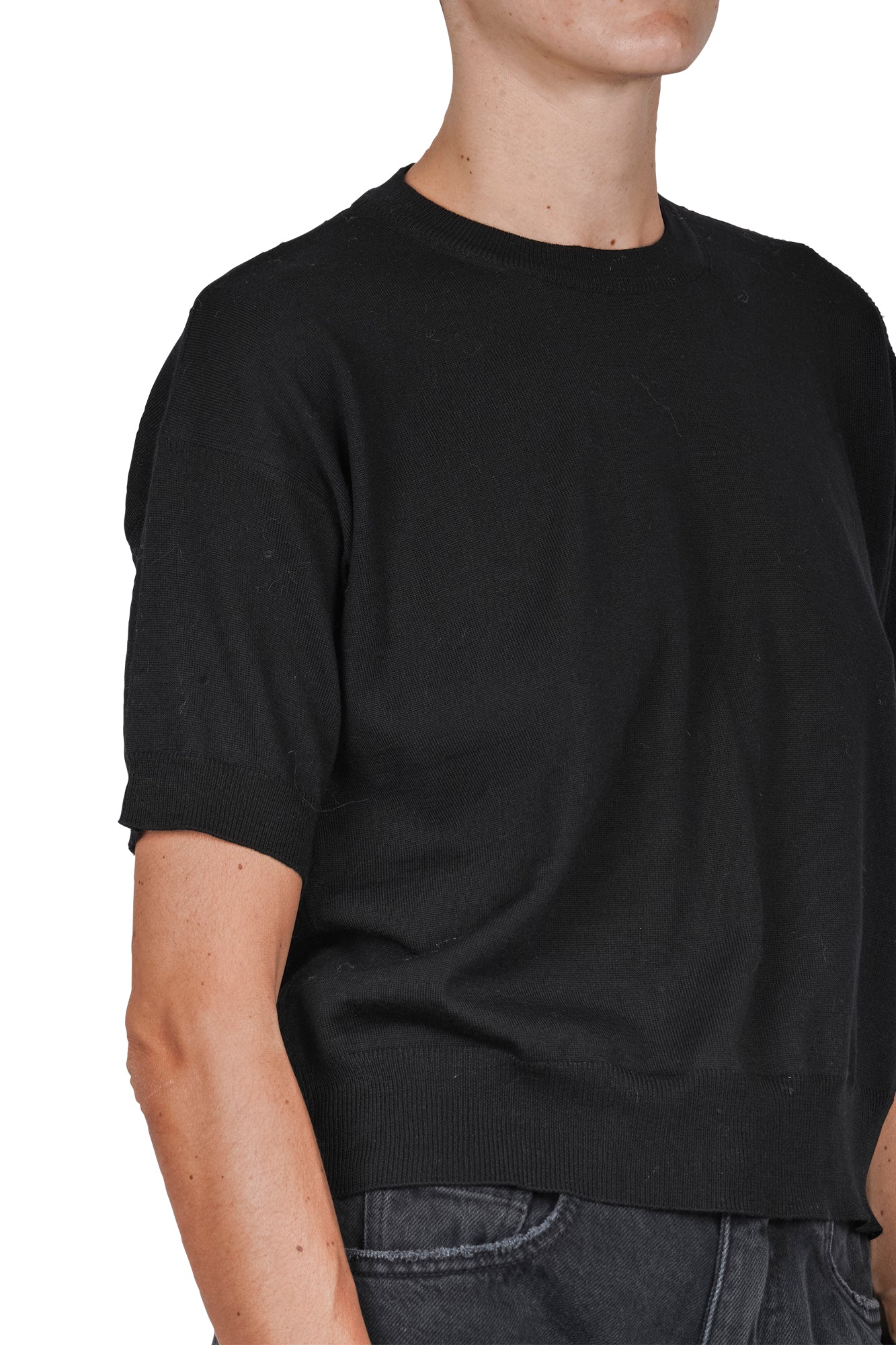 Short sleeve wool sweater.