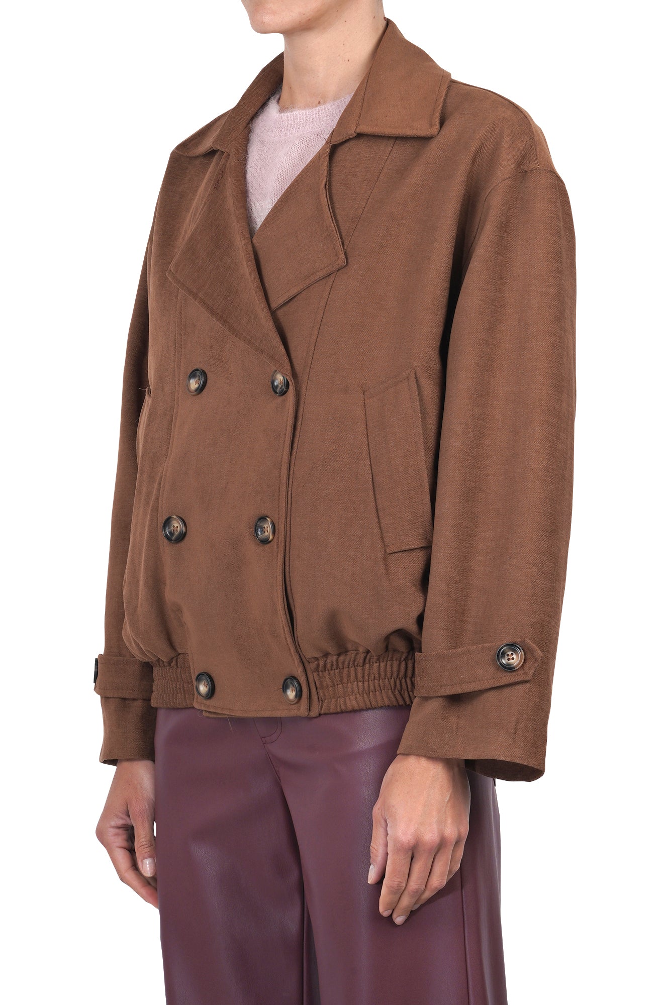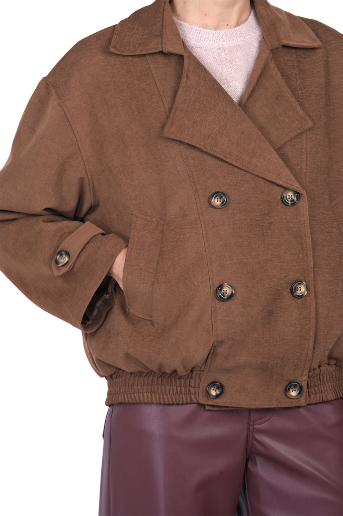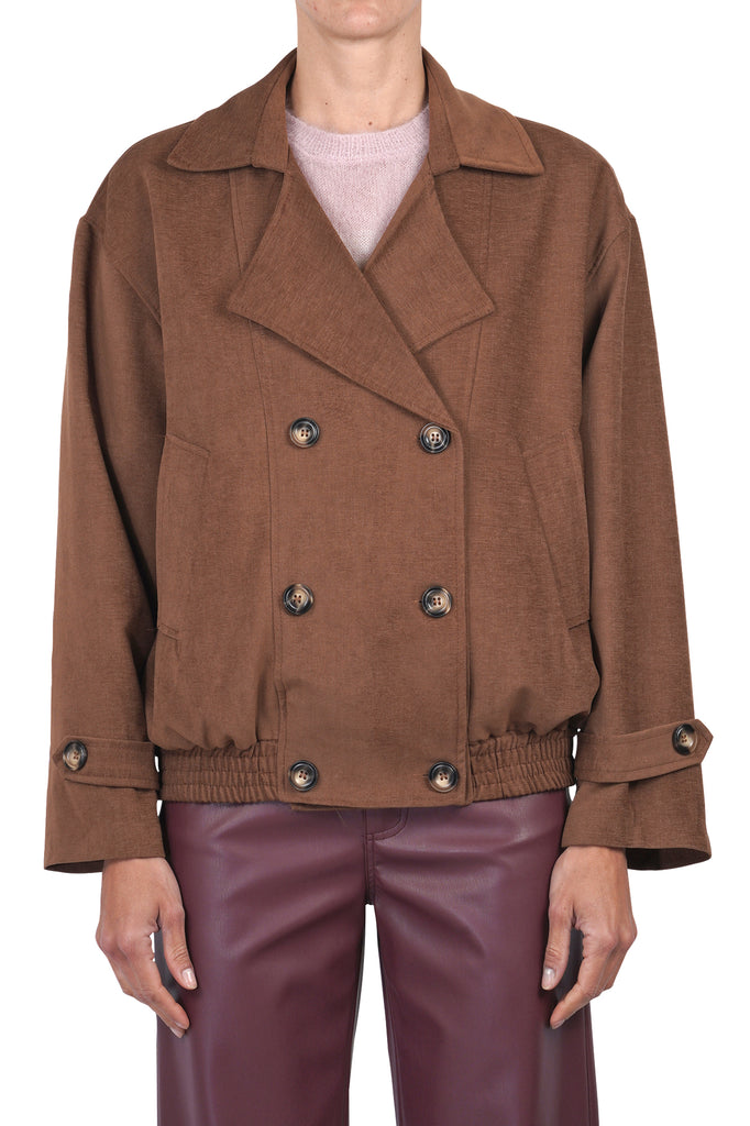 Double-breasted bomber in chenille.