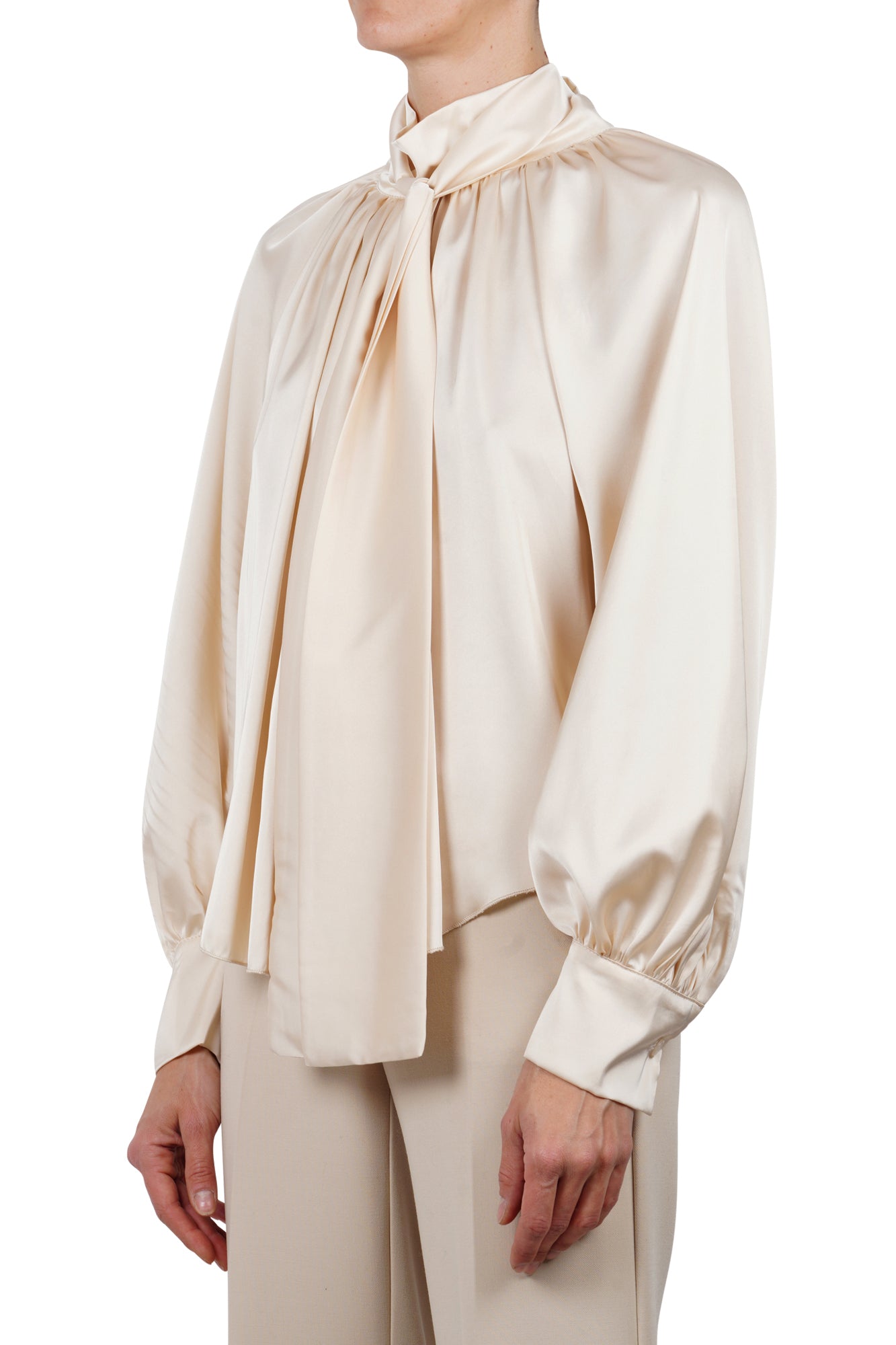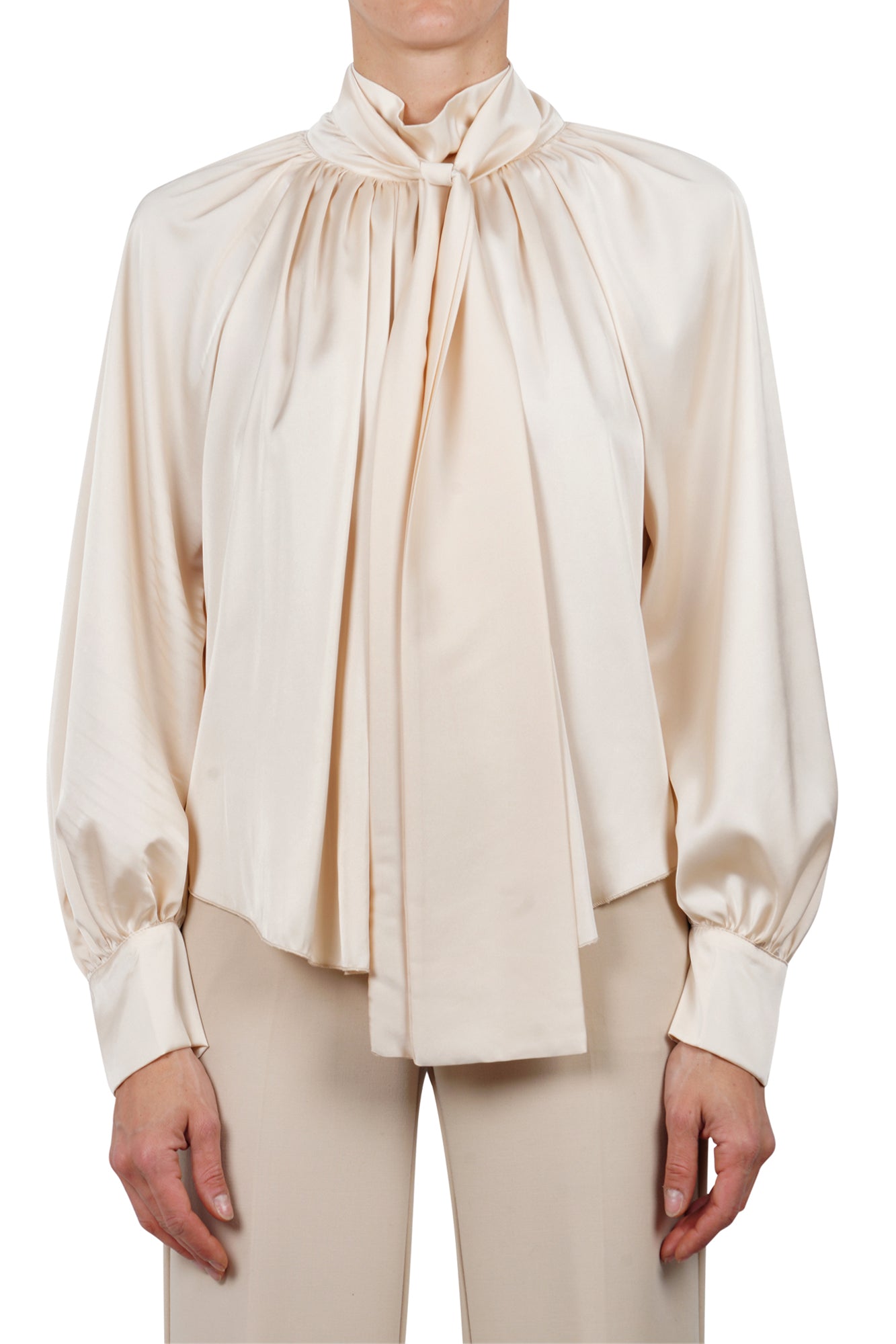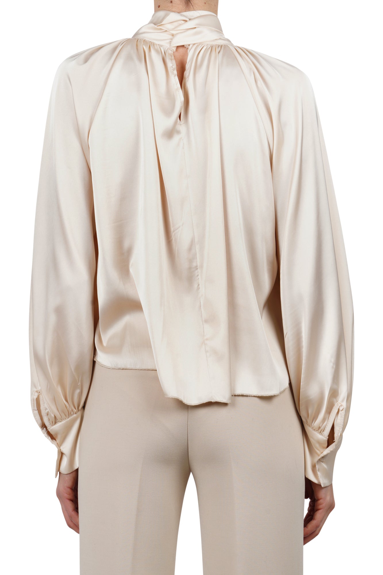 - Eleganza e Versatilità: La blusa in raso La Femme Blanche aggiunge un tocco di eleganza a ogni outfit, sia di giorno che di sera.
