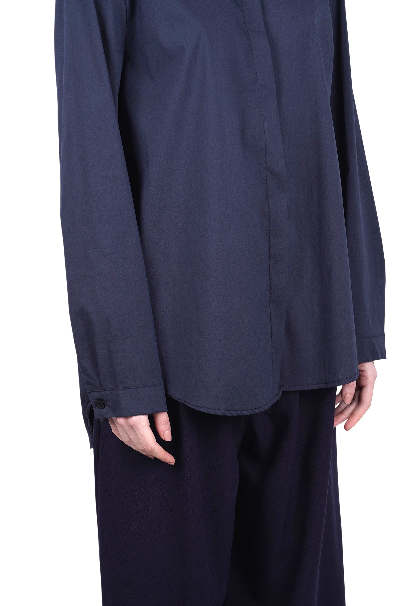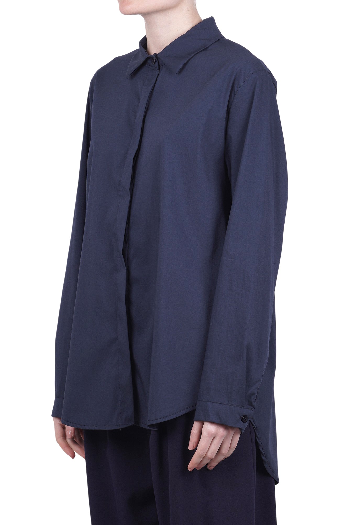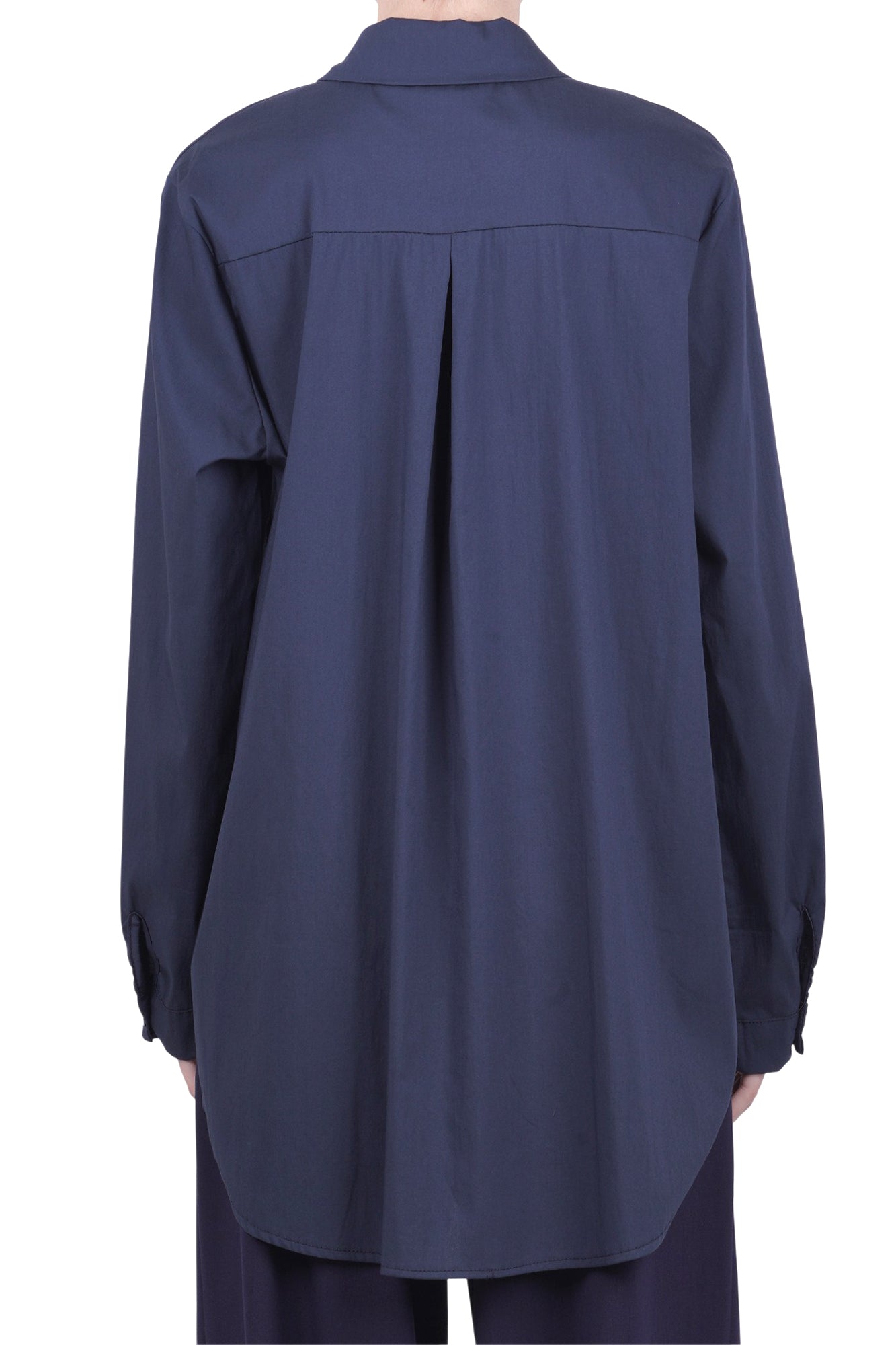 Oversized shirt in cotton blend. Classic pointed collar. Front closure with buttons. Long sleeves with short cuffs. Slightly longer round hem at the back. Fabric composition: 70% cotton, 28% nylon, 2% elastane. Fit: wide. Made in Italy. The model wears a Size size and is 175 cm tall. A classic oversized shirt perfect for elevating your casual looks.