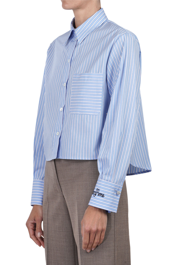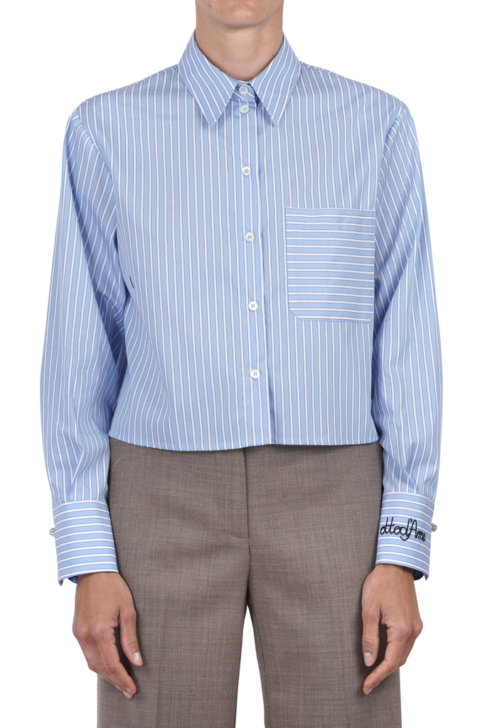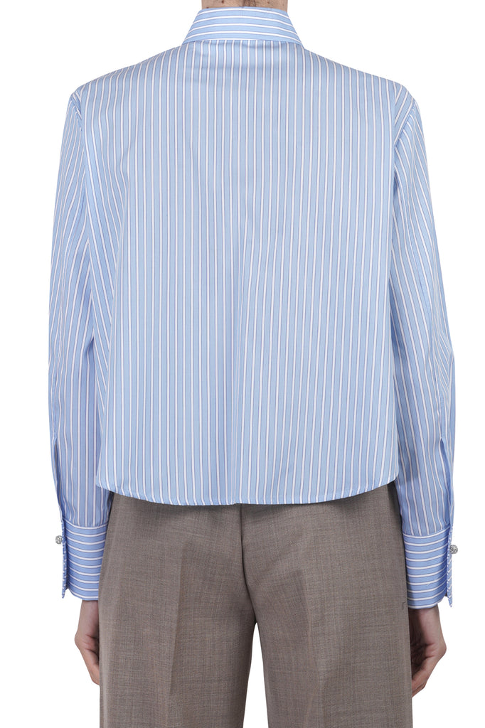 - Stile unico: la camicia crop in popeline con colletto a punta e bottoni logati offre uno stile distintivo e di tendenza.