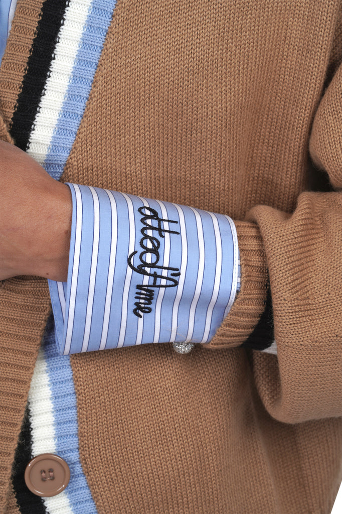 - Dettagli ricercati: i bottoni gioiello, il logo ricamato sul polsino e la tasca frontale la rendono un capo ricco di dettagli sofisticati.