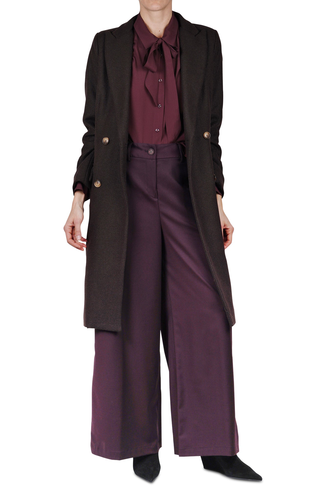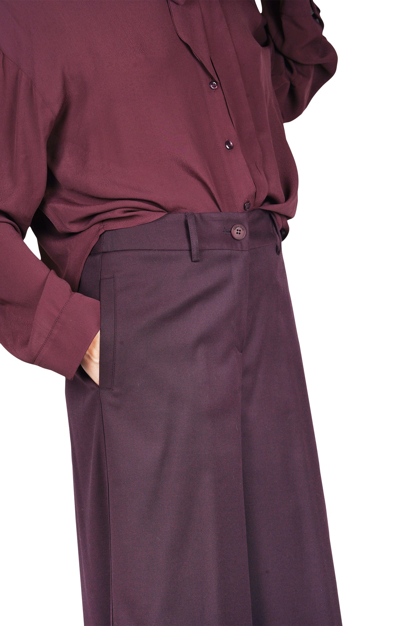 Pantalone lambrusco a gamba ampia.