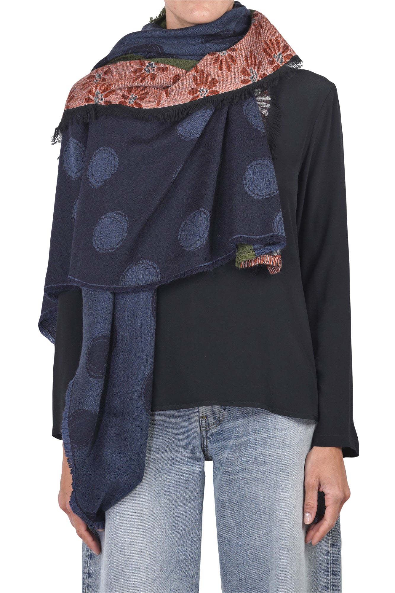 Sciarpa con fantasia a cerchi e floreale.