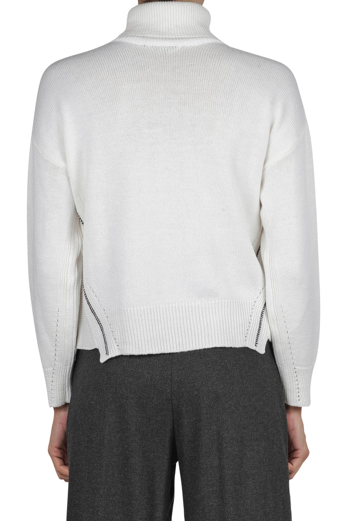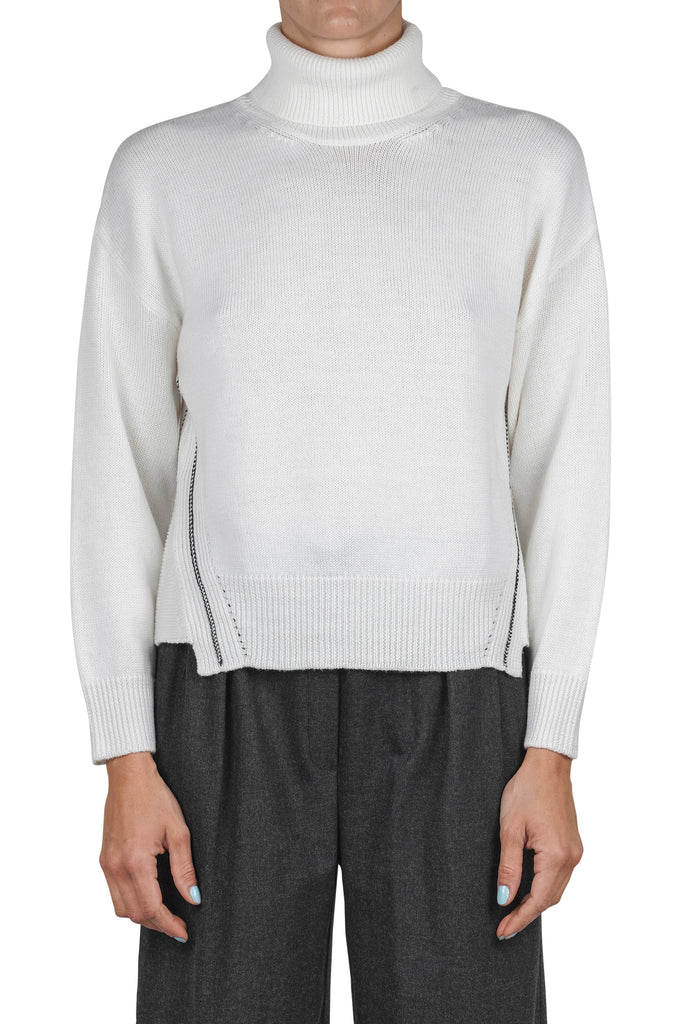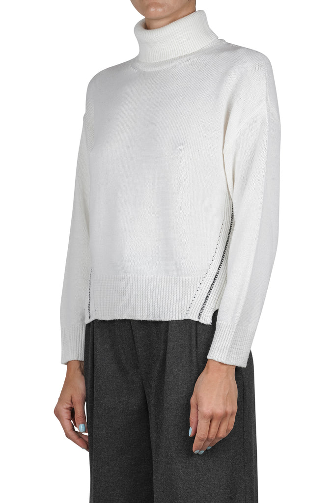 Maglia dolcevita in lana merinos con dettagli a contrasto.
