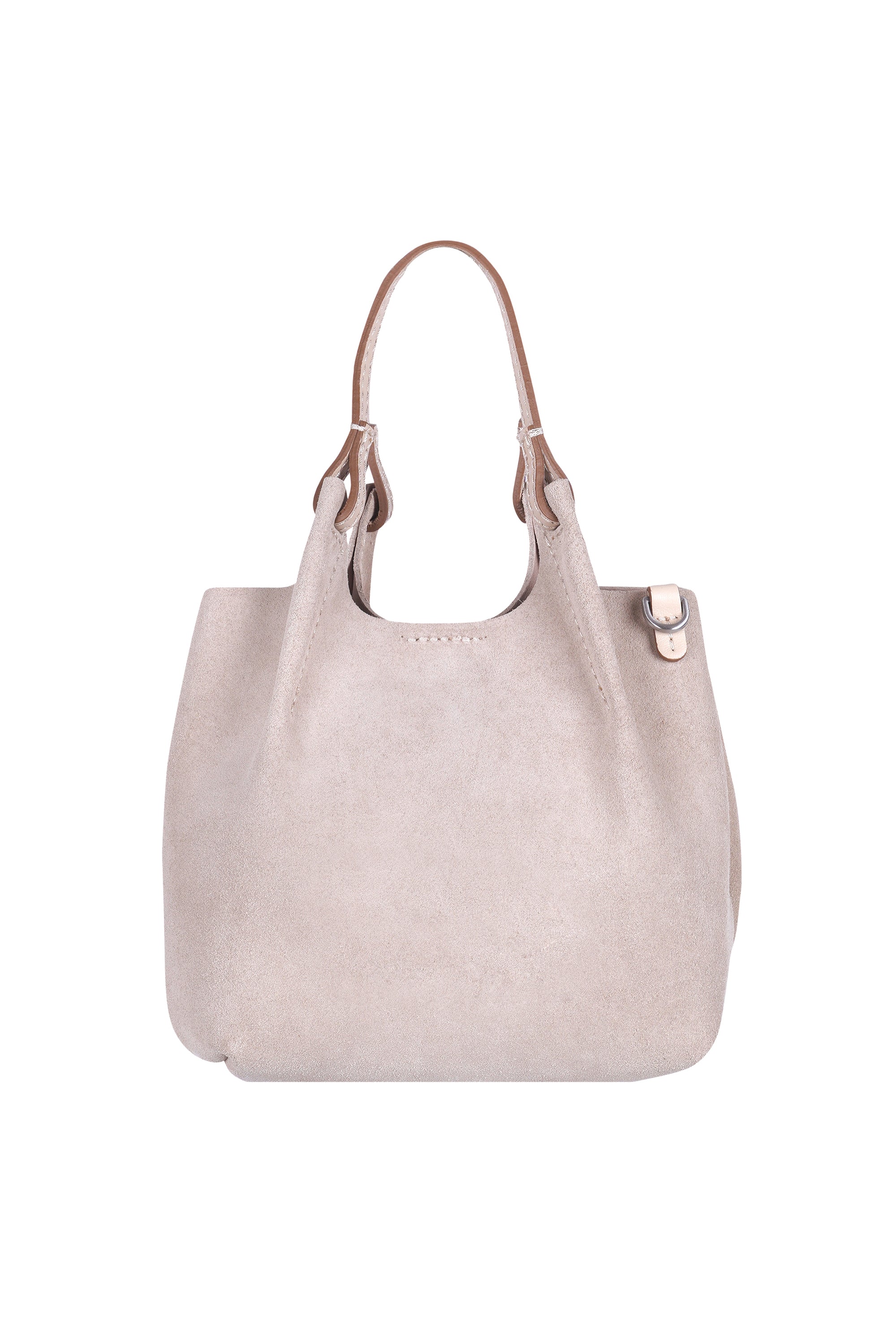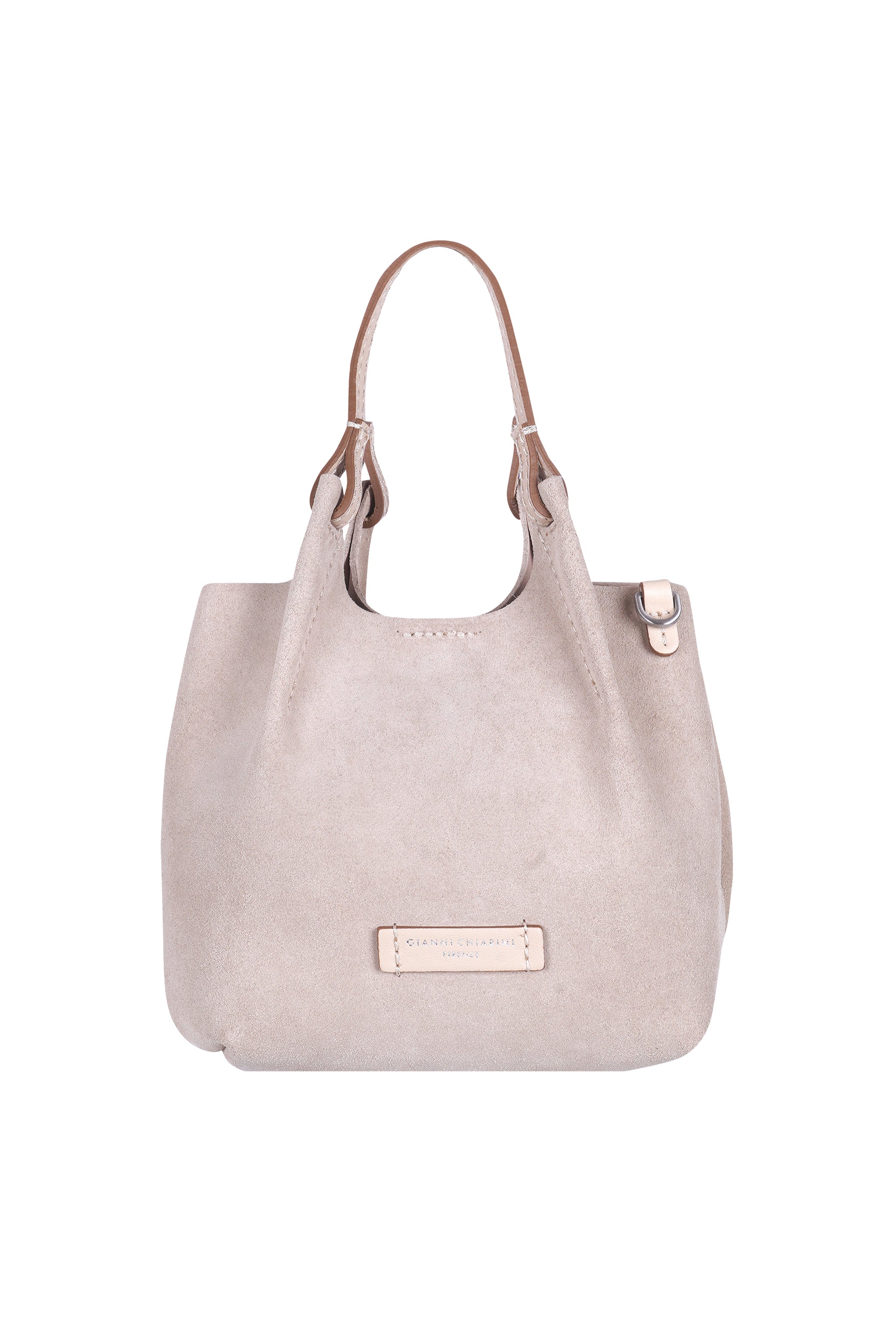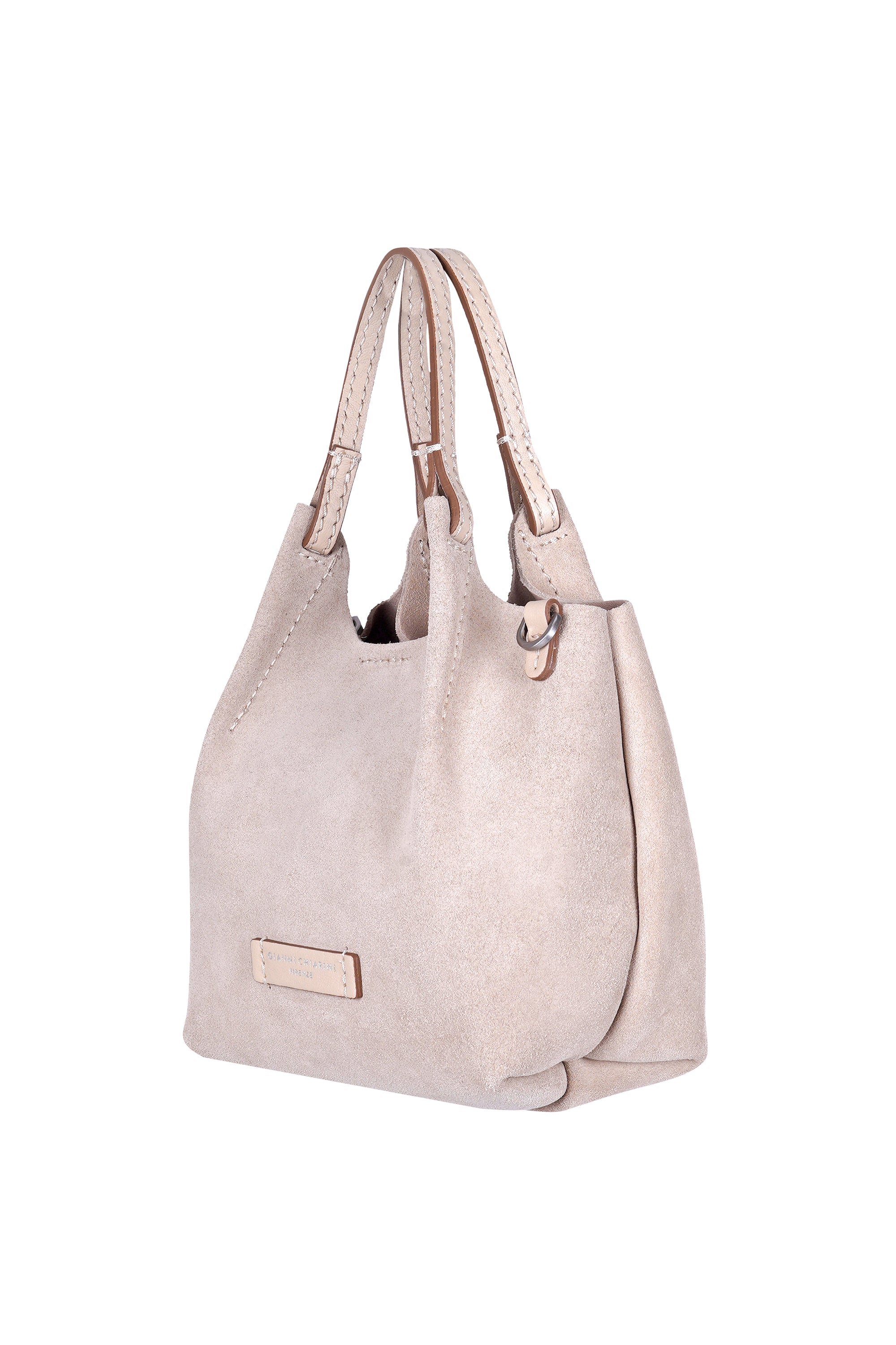 Borsa Dua Micro in pelle scamosciata. Realizzata in morbida vera pelle scamosciata. Design compatto e minimal. Doppi manici in pelle per portabilità a mano o a spalla. Chiusura con clip magnetica. Monoscomparto interno sfoderato. Tracolla di servizio inclusa per portabilità crossbody. Dettaglio logo Gianni Chiarini Firenze su placchetta in pelle. Altezza: 19 cm. Lunghezza: 20 cm. Profondità: 8 cm. Composizione: 100% pelle. Made in Italy. La borsa essenziale per chi ama un'eleganza discreta ma ricercata.