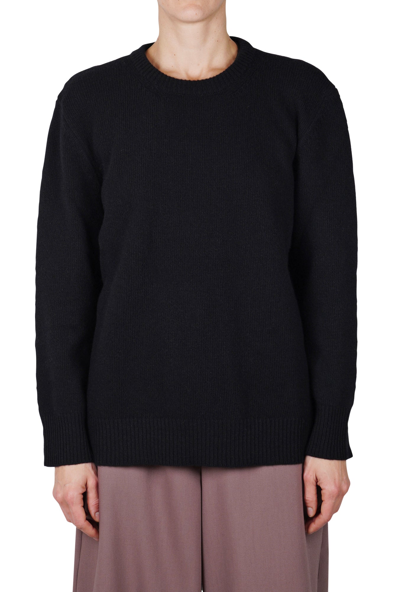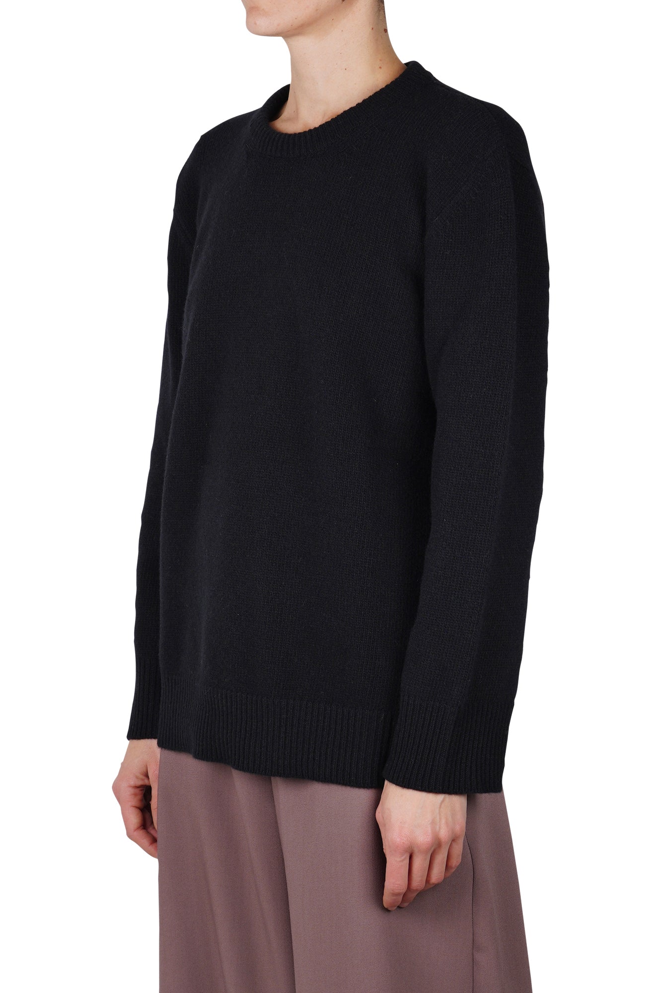Maglia girocollo oversize in pura lana.