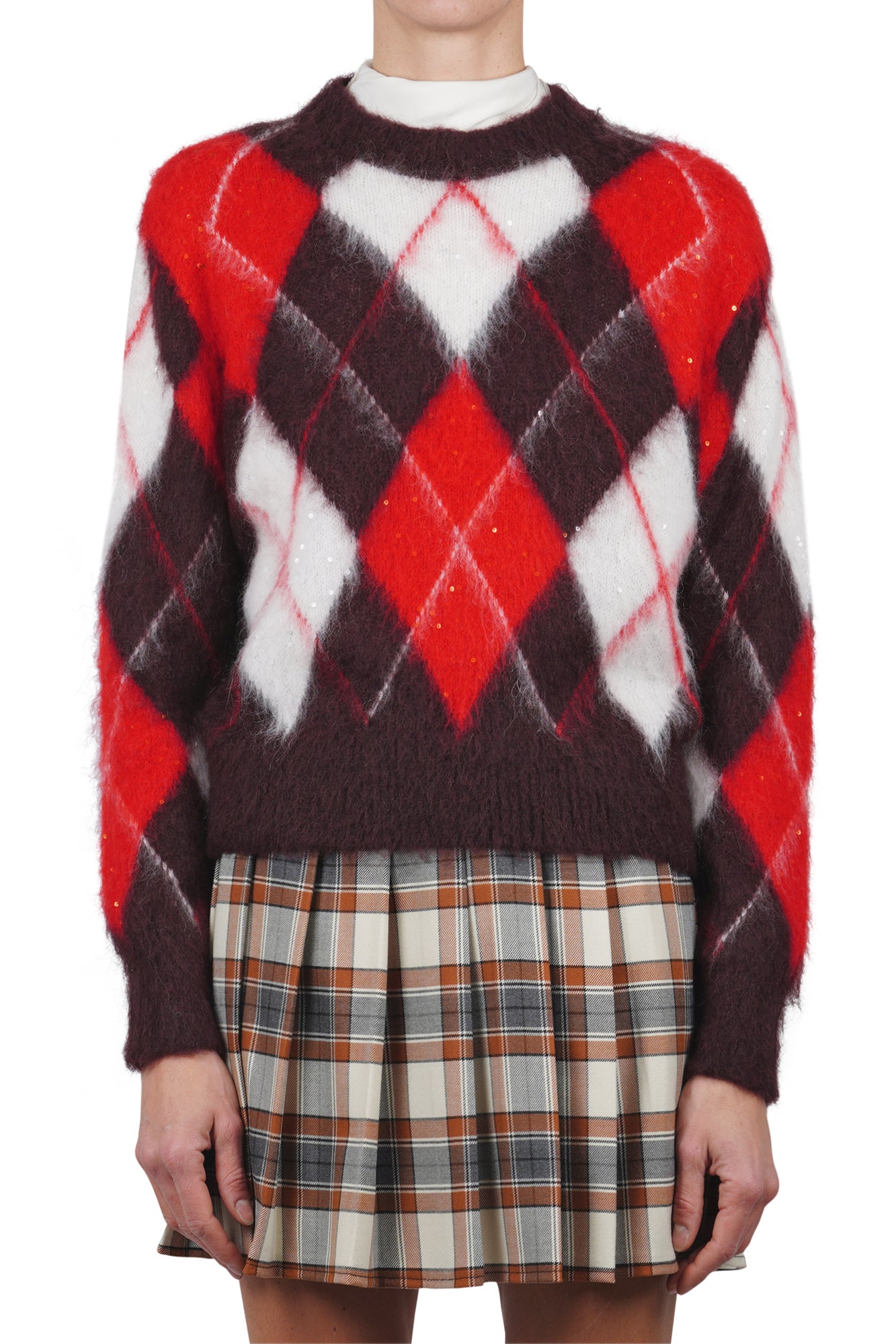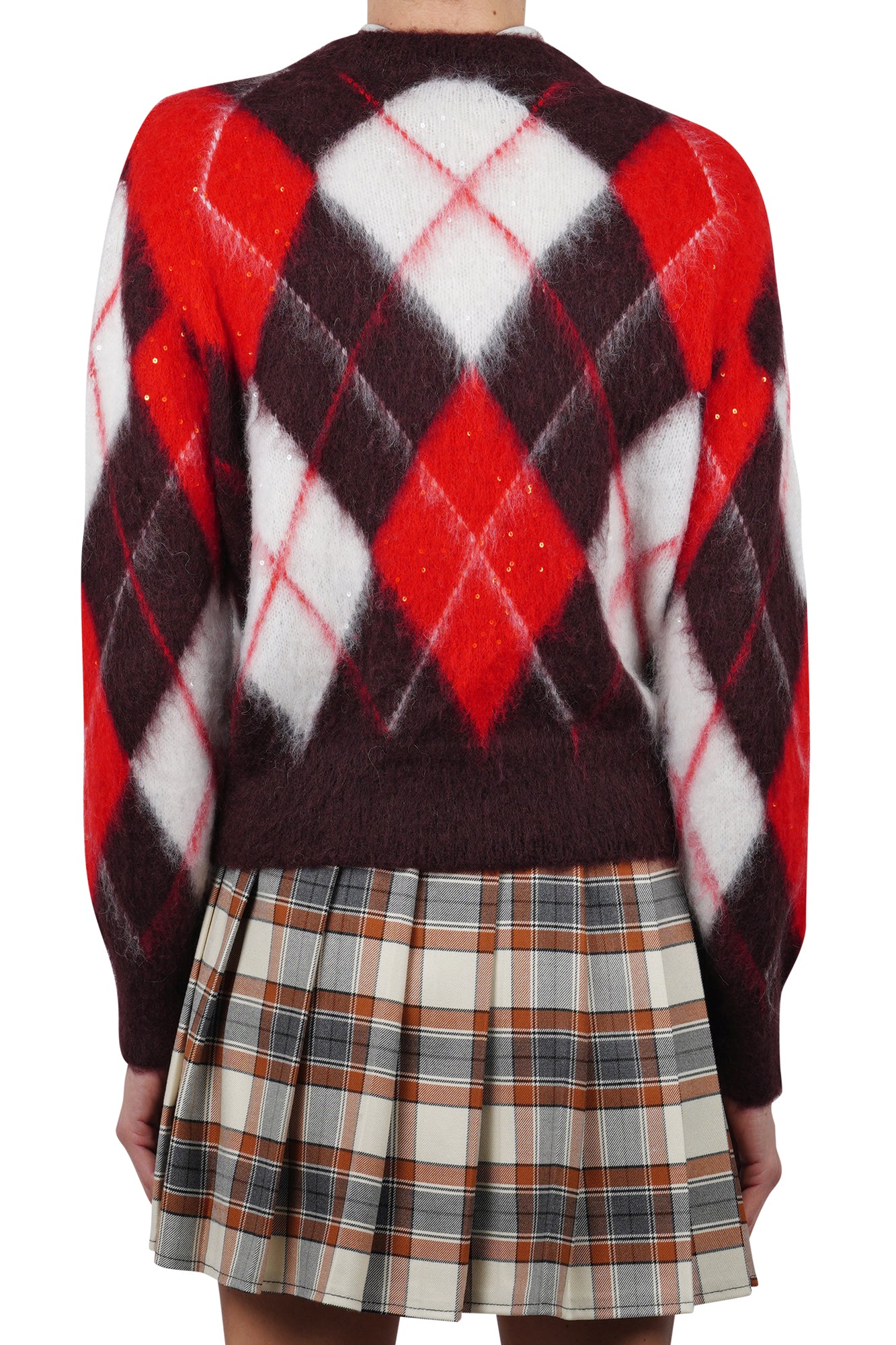 - Stile sofisticato: Il motivo Argyle e le paillettes tono su tono conferiscono una raffinata eleganza al capo.