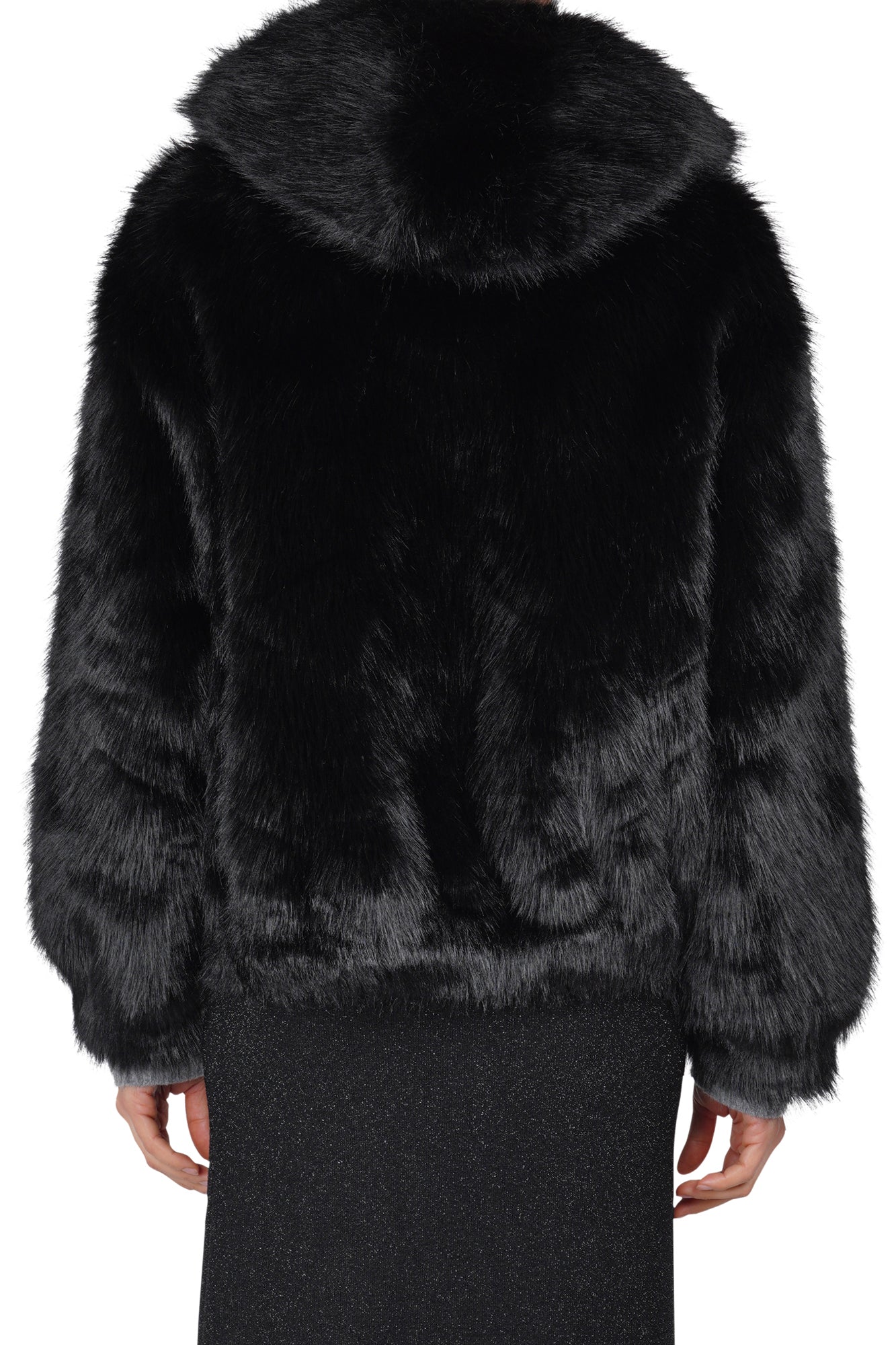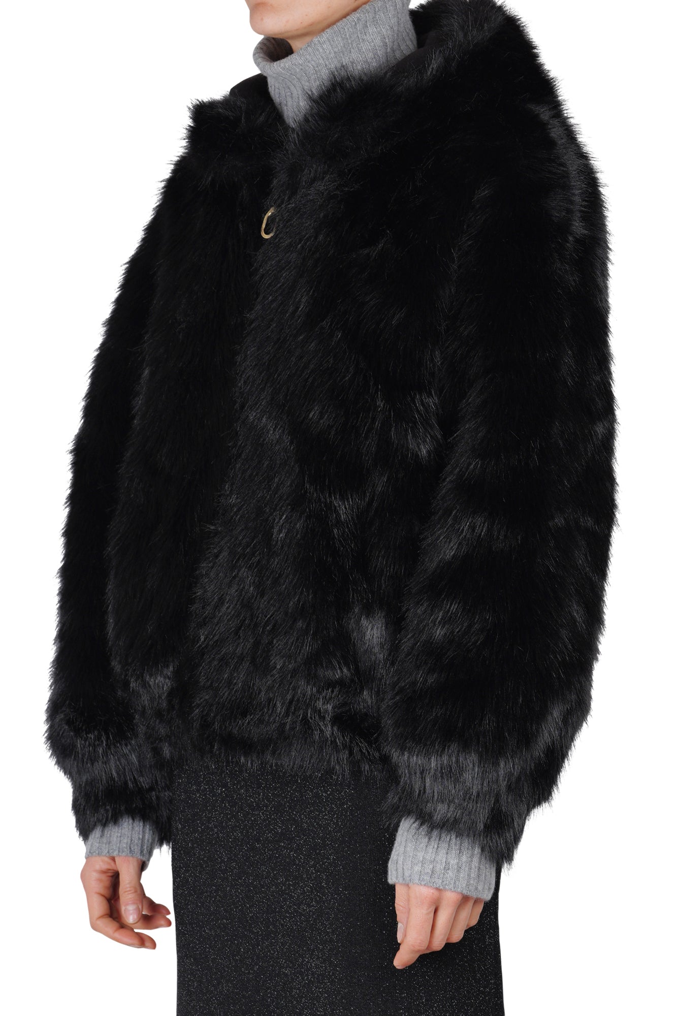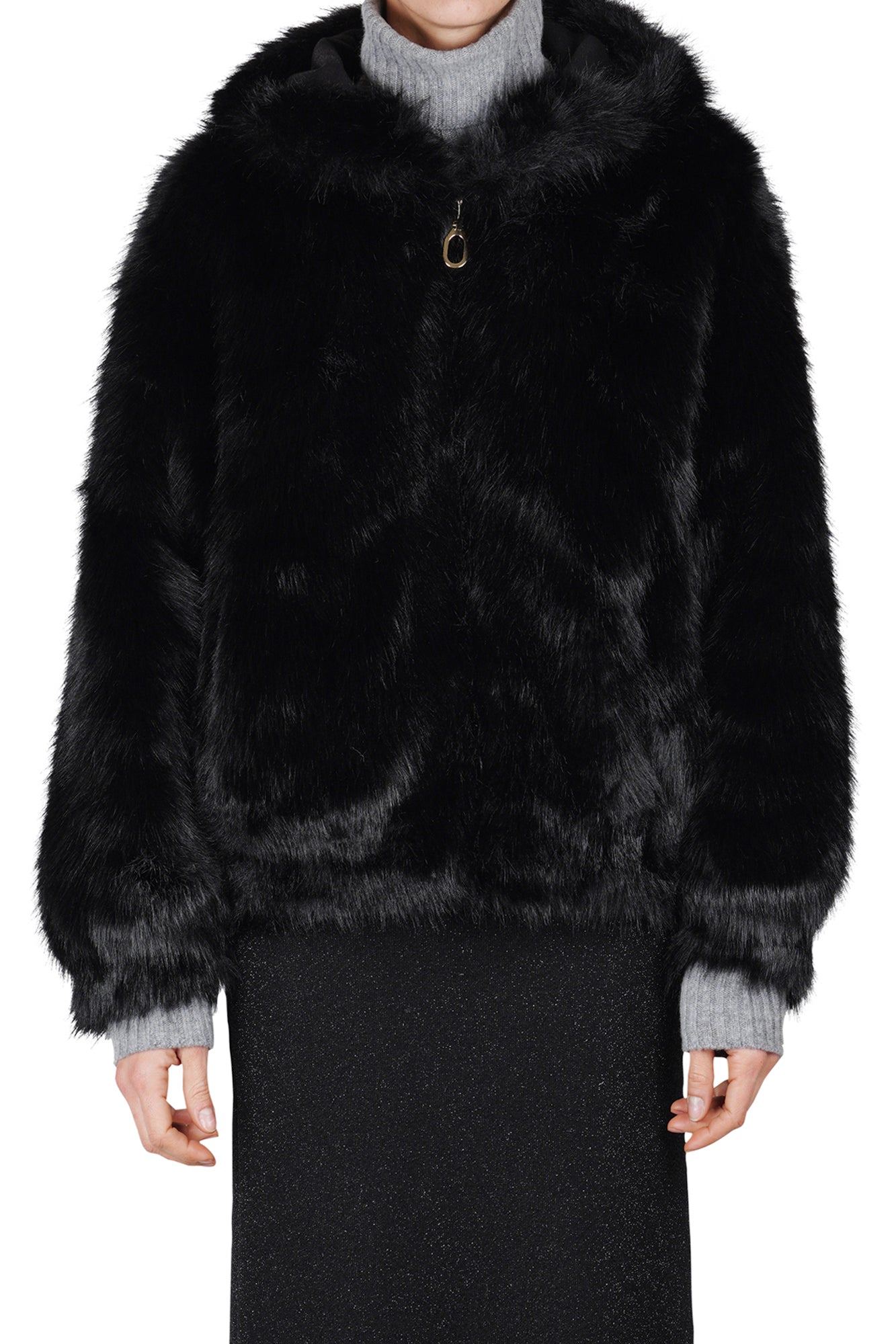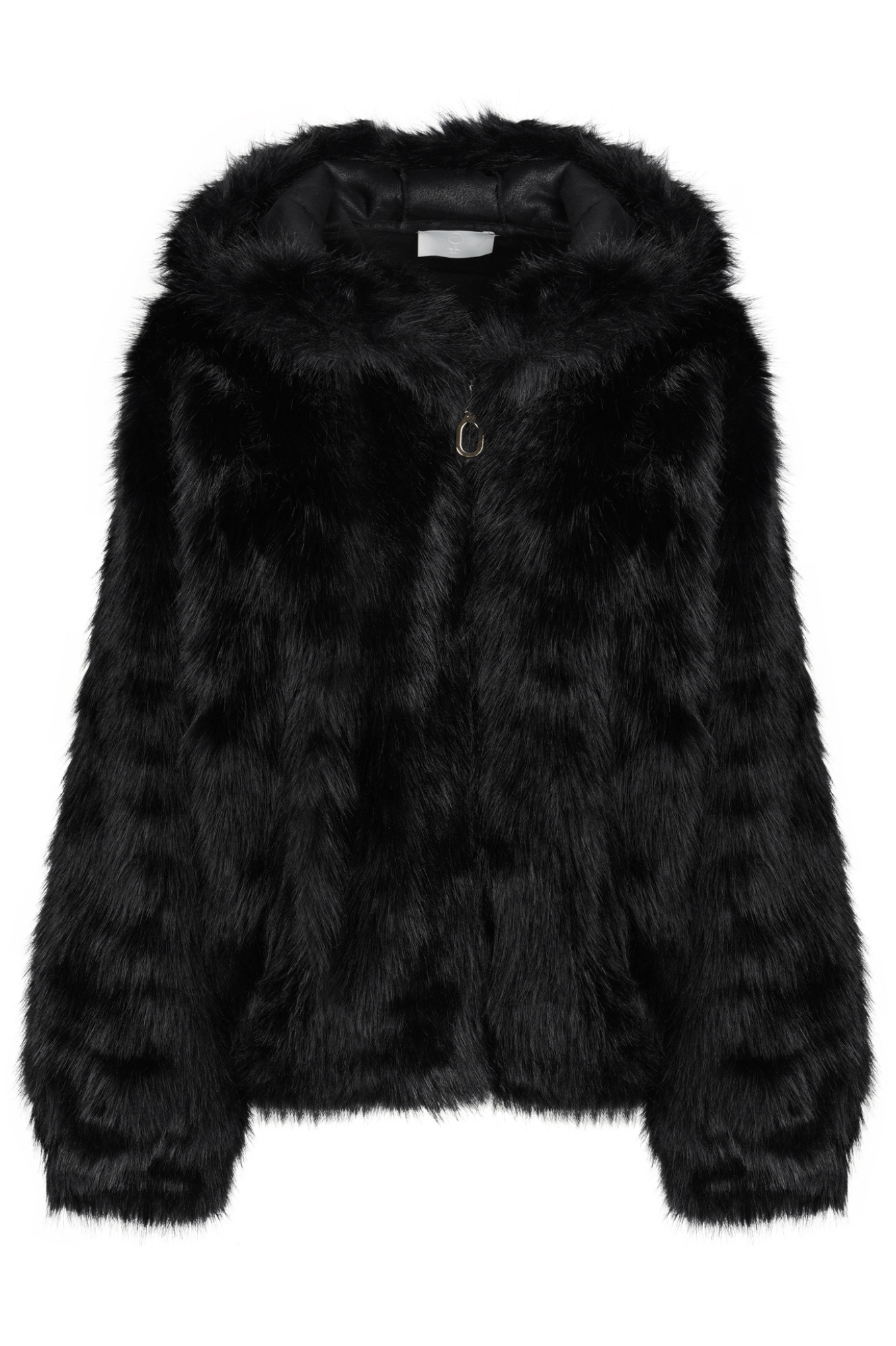 Giacca in ecopelliccia con cappuccio.
