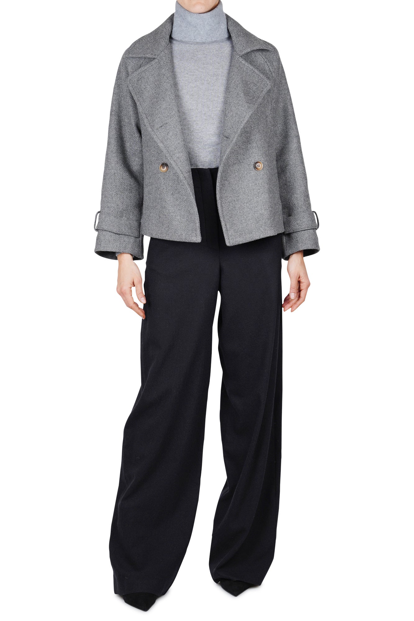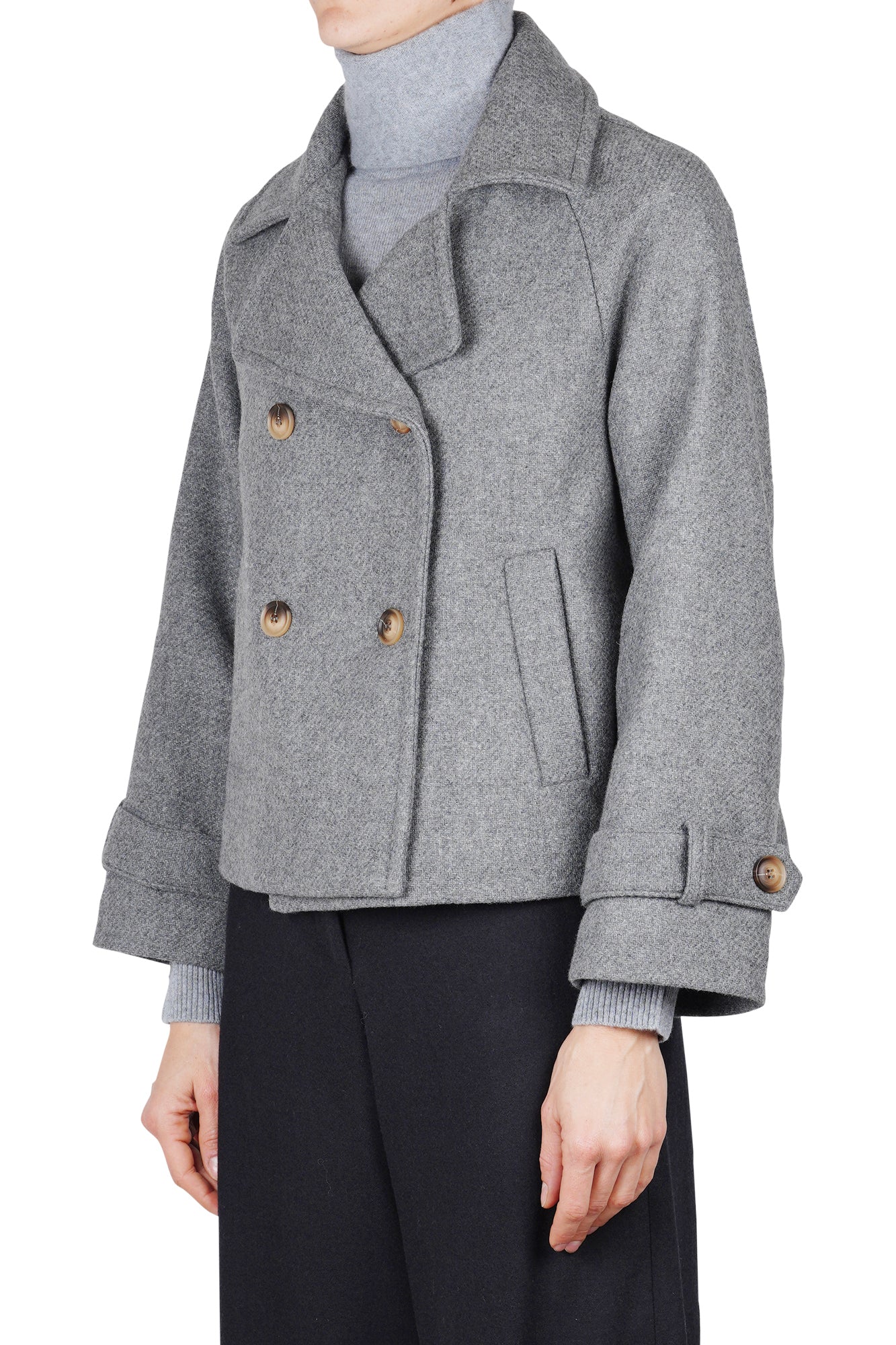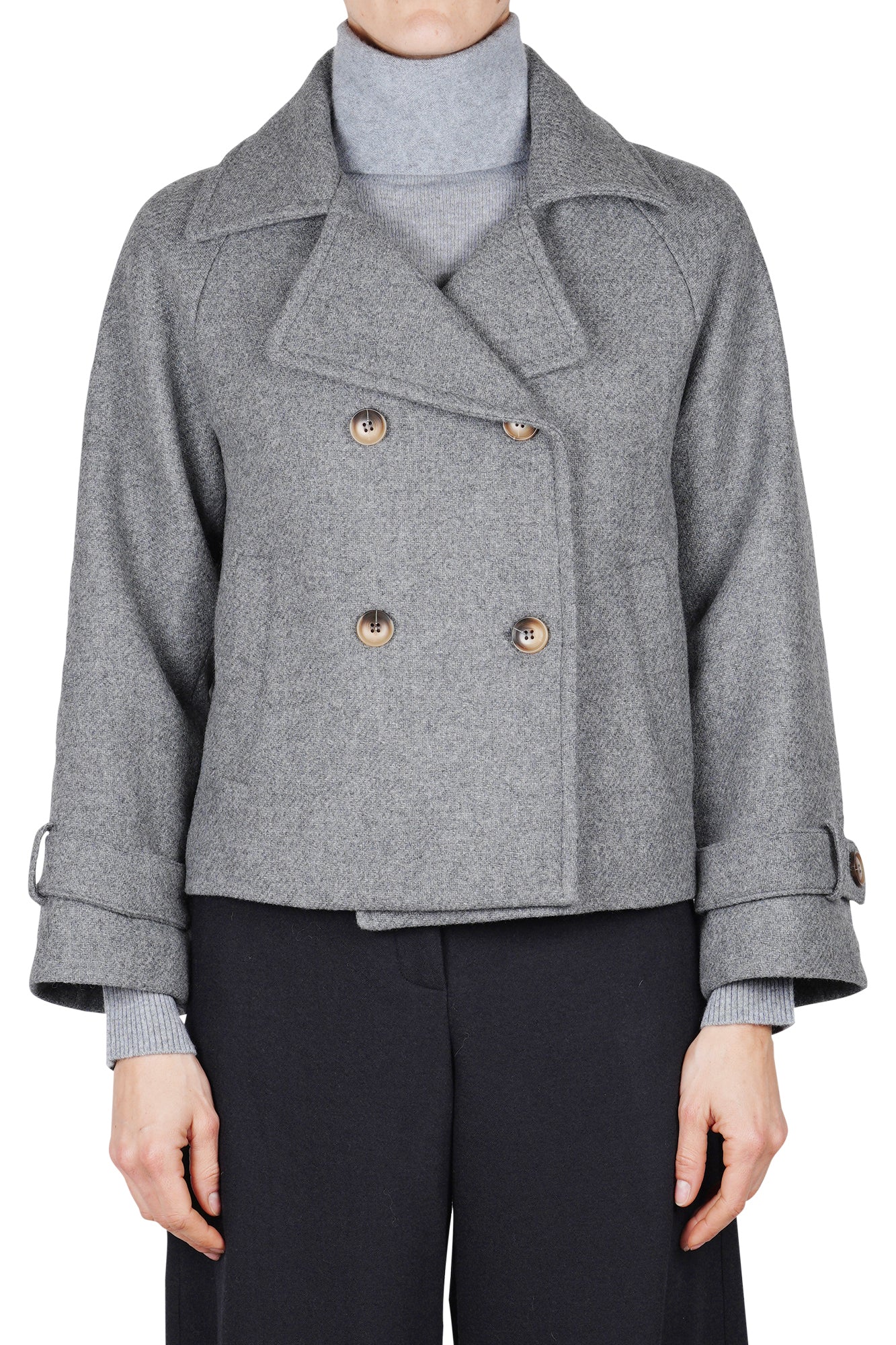 Cappotto corto doppiopetto in misto lana.