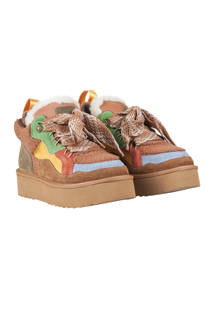 Stivaletti platform Moon 7 in pelle e tessuto.
