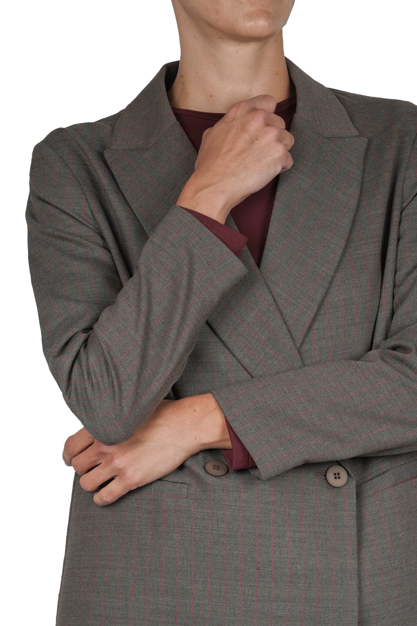 Chiusura doppiopetto con bottoni.