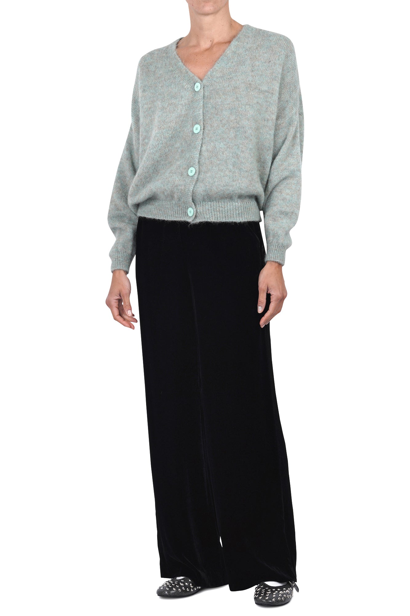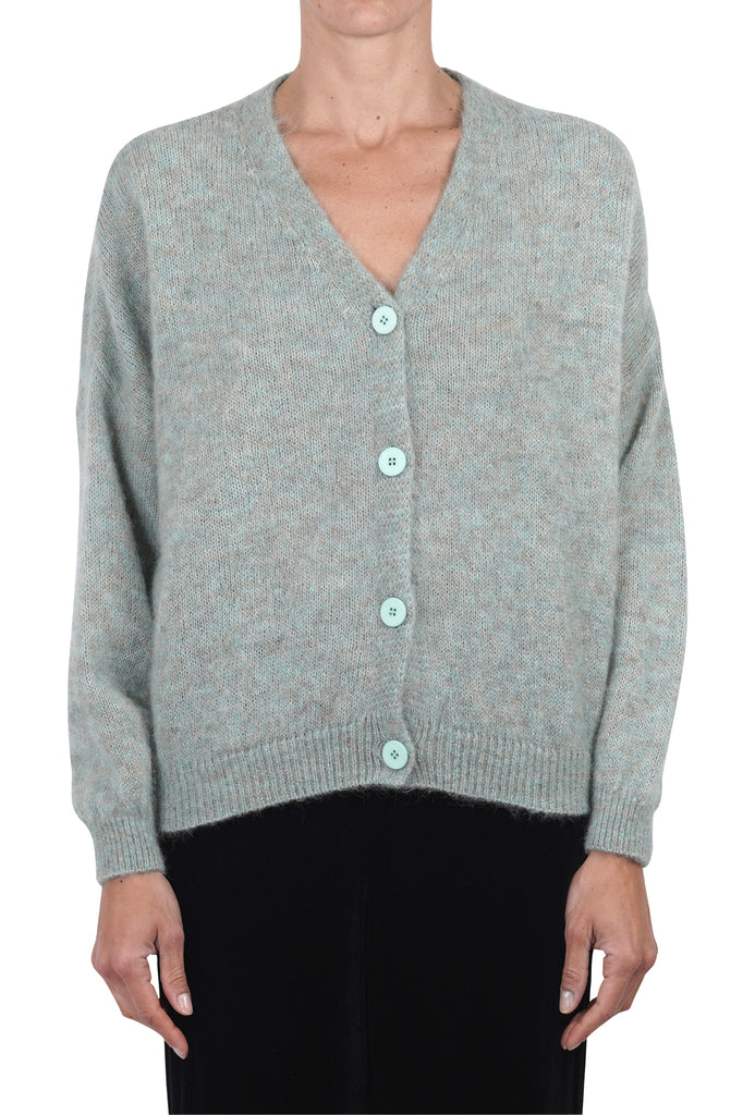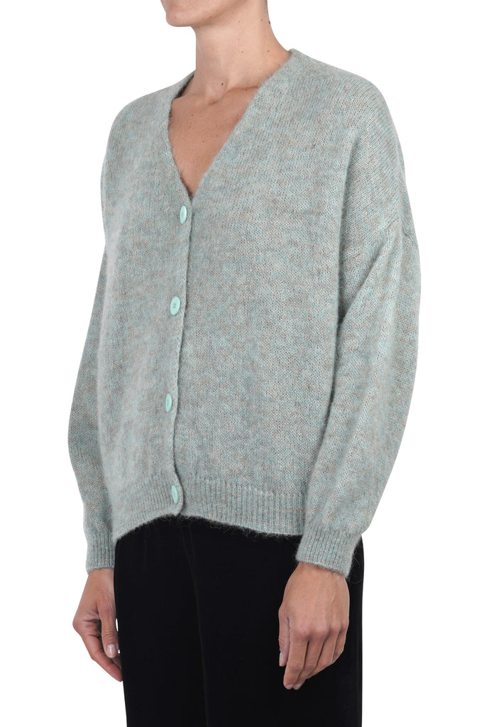 Cardigan in alpaca. Scollo a V. Spalle scivolate. Maniche lunghe. Polsini e fondo a costine. Chiusura frontale con bottoni. Taglio a sacchetto. Composizione tessuto: 70% alpaca, 30% poliammidica. Vestibilità: regolare. Made in Italy. La modella indossa la taglia S ed è alta 175 cm. Caldo e avvolgente, questo cardigan è perfetto per i giorni più freddi.