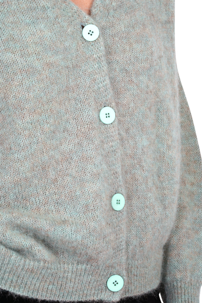 • Chiusura frontale con bottoni: pratico e funzionale, permette di indossare e togliere il cardigan con facilità.
