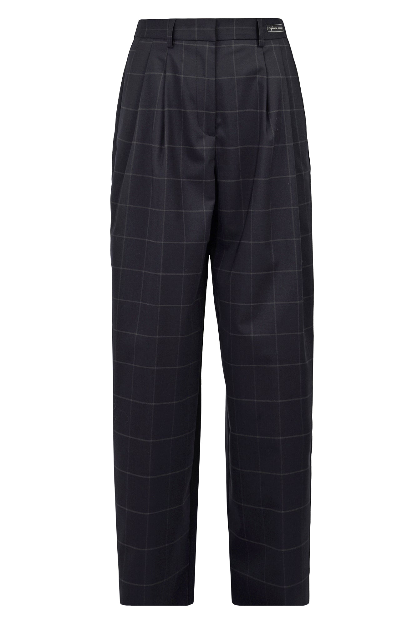 Pantaloni ampi patchwork in misto lana. Due tipi di stoffa differenti. Passanti per cintura. Chiusura frontale con gancetto, zip e controbottone. Pinces e pieghe frontali. Due tasche laterali alla francese. Profili laterali taglio vivo. Pinces sul retro. Due finte tasche a filetto sul retro. Gamba dritta e ampia con piega centrale. Larghezza fondo: 24 cm. Composizione tessuto 1: 54% poliestere, 44% lana, 2%elastane. Composizione tessuto 2: 54% poliestere, 44% lana vergine, 2% elastane. Vestibilità: regolare. Made in Italy. La modella indossa la taglia 40 ed è alta 175 cm. Amiamo questi pantaloni per il carattere classico e i tocchi super cool.