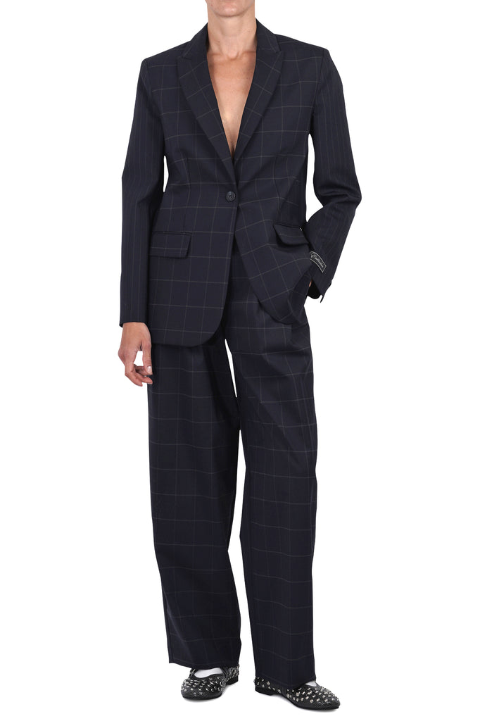 • Pieghe frontali e pinces: Dettagli sartoriali che conferiscono eleganza e struttura al pantalone.
