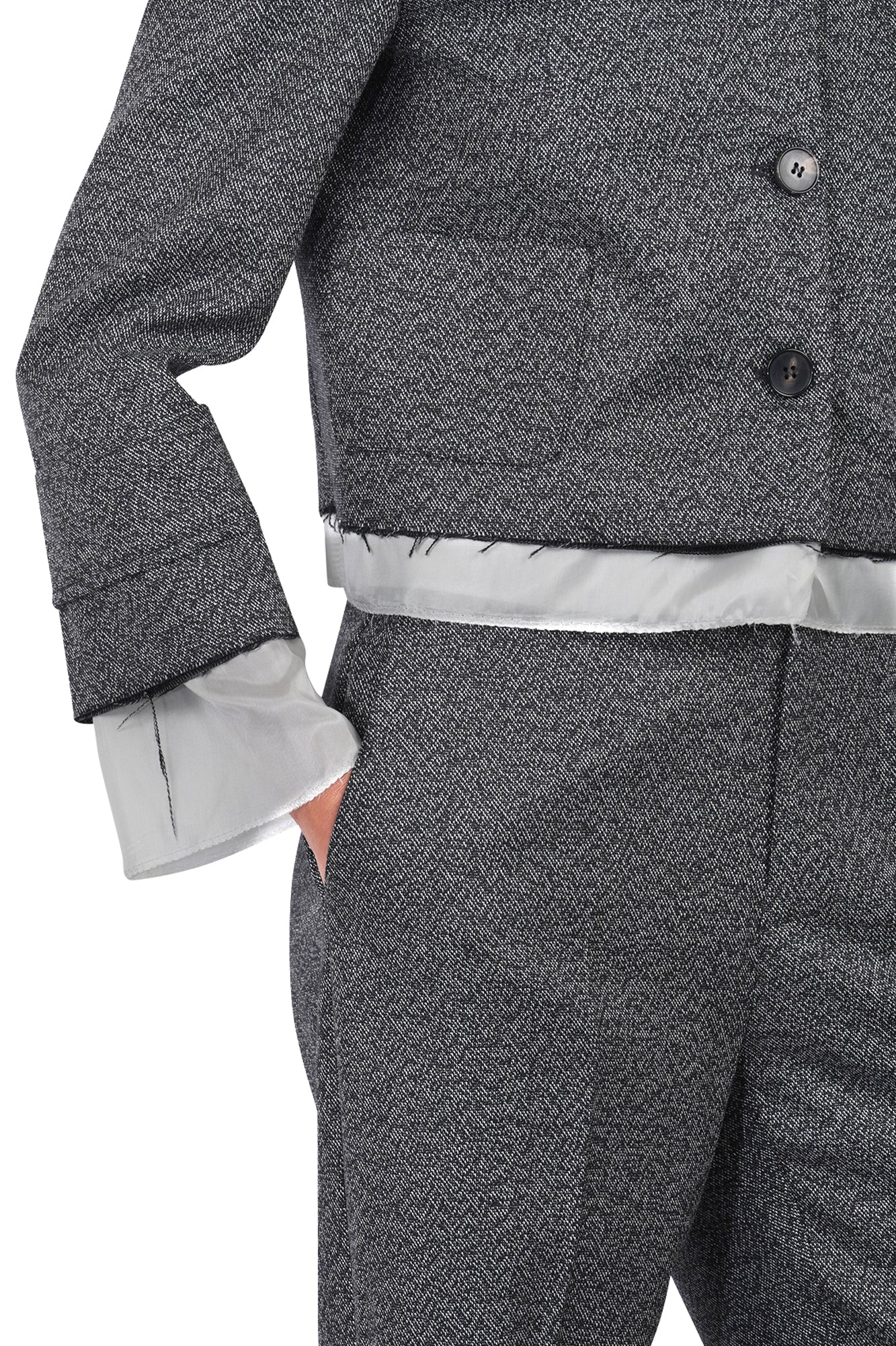 - Dettagli retro: le pinces sul retro e la tasca a filetto con bottone aggiungono dettagli interessanti al pantalone