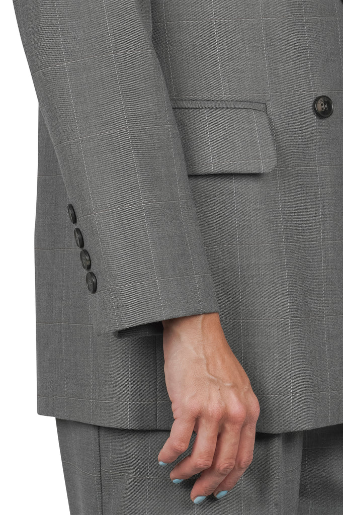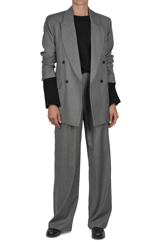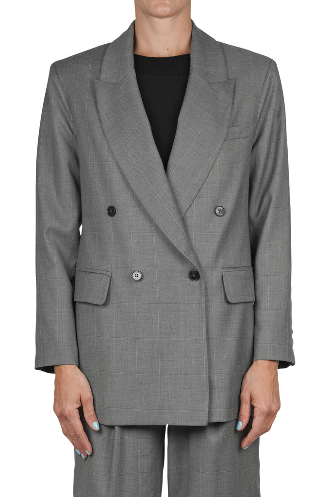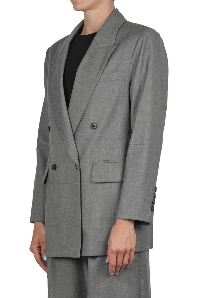 Giacca over in jacquard taupe. Collo revers. Spalle leggermente imbottite. Maniche lunghe con bottoncini sul fondo. Taschino finto sul petto. Chiusura doppiopetto con bottoni. Tasche frontali con panno. Foderata. Composizione tessuto: 78% poliestere, 20% viscosa, 2% elastan. Composizione fodera: 51% acetato, 49% viscosa. Vestibilità: ampia. Made in Italy. La modella indossa una taglia 40 ed è alta 175cm. Abbinato al suo pantalone è un total look semplice ma elegante.