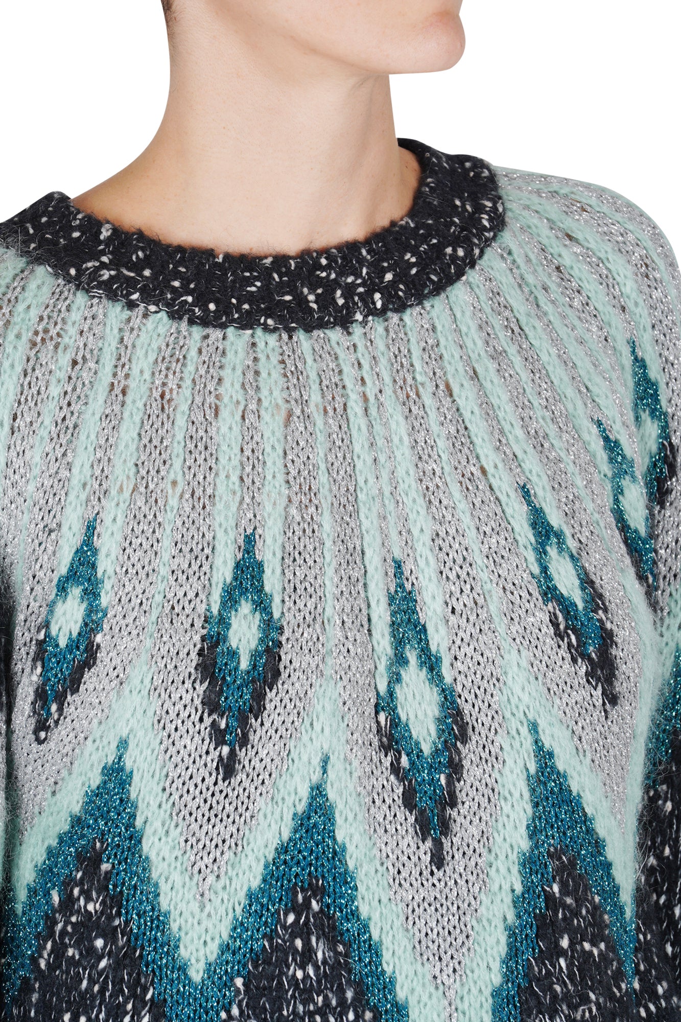 Motivo geometrico arricchito da un sottile filo lurex.