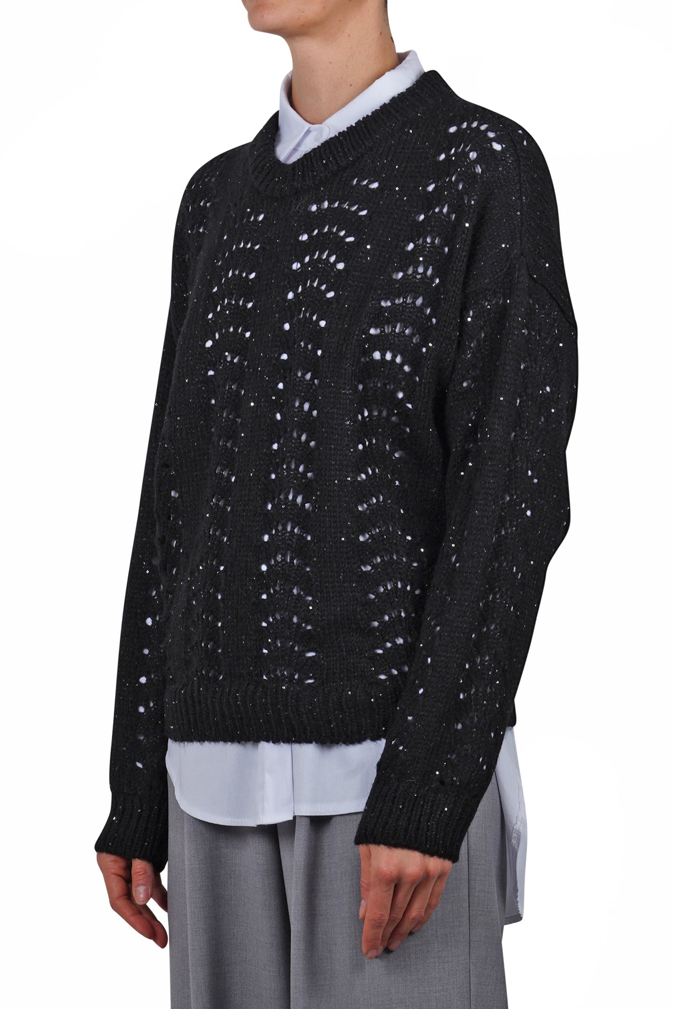 Product code: B44031C MAGLIA G/COLLO P/VENTAGLIO M/LANA PAIL NERO