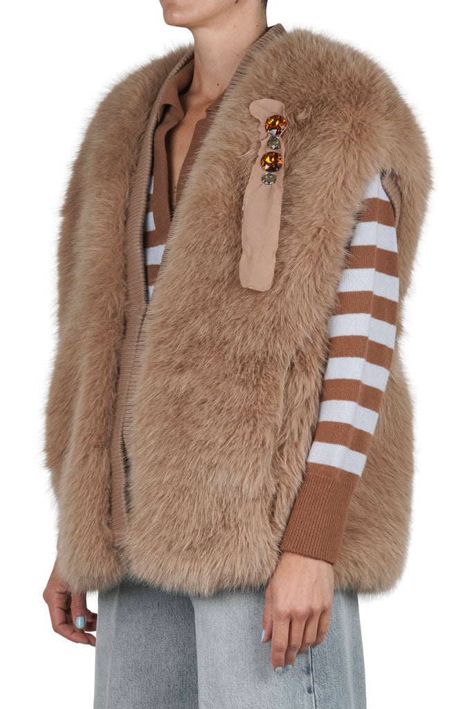 - Comodità: Realizzato in ecopelliccia e con vestibilità ampia, questo gilet offre calore e comfort senza sacrificare lo stile.